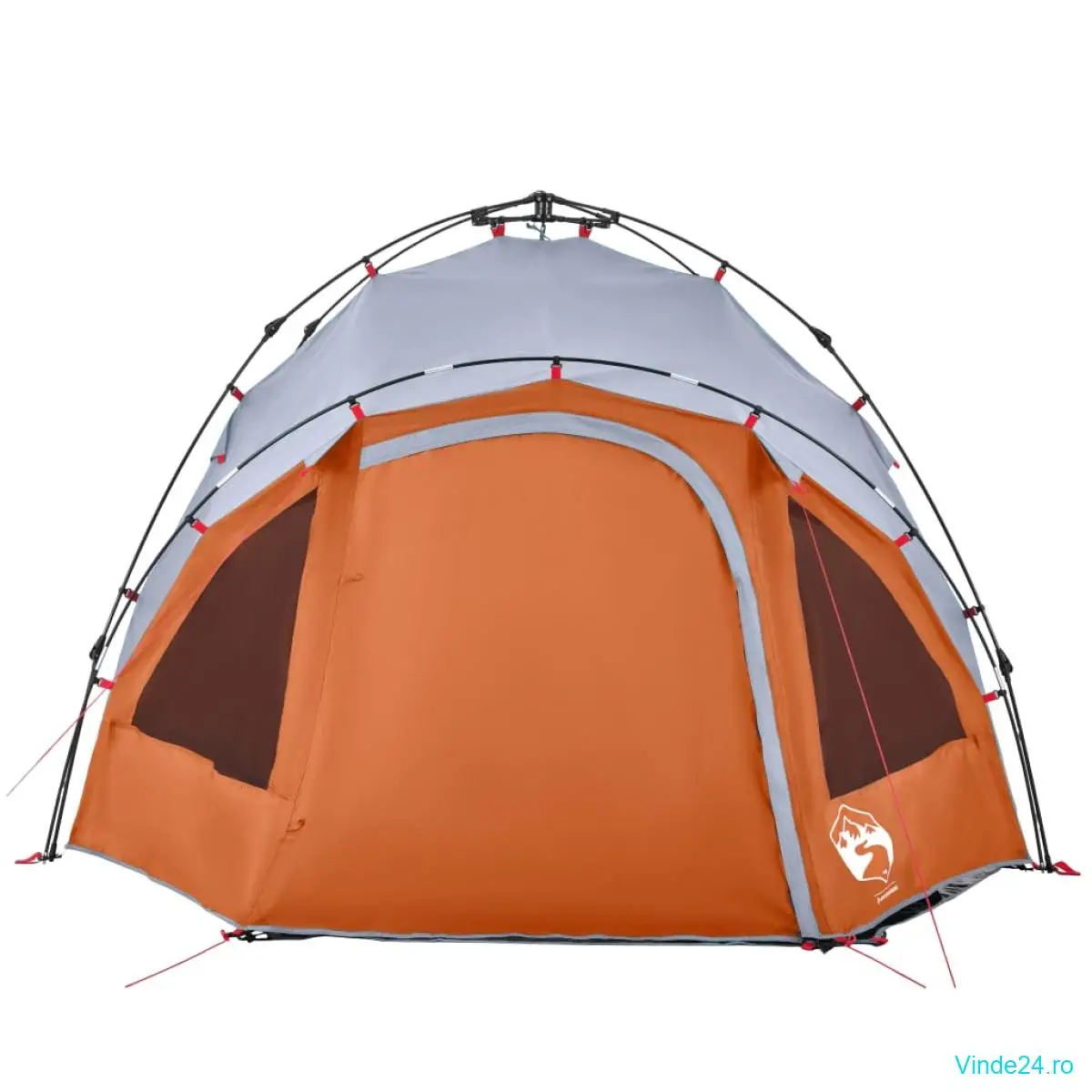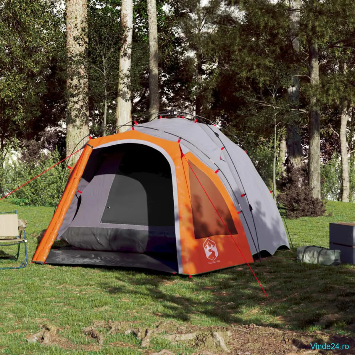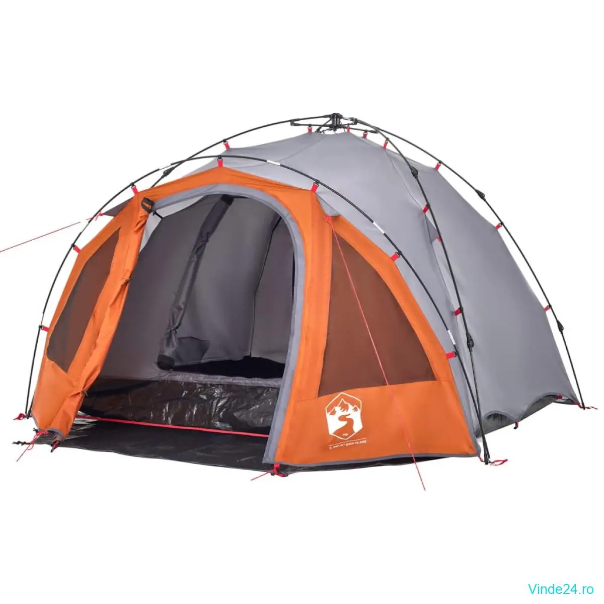 vidaXL Cort camping cupolă 3 persoane, gri/portocaliu, setare rapidă