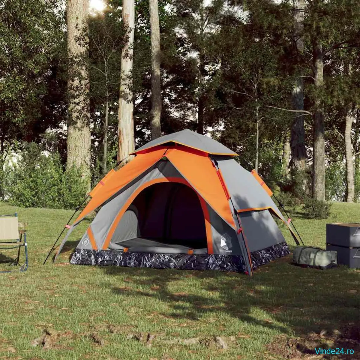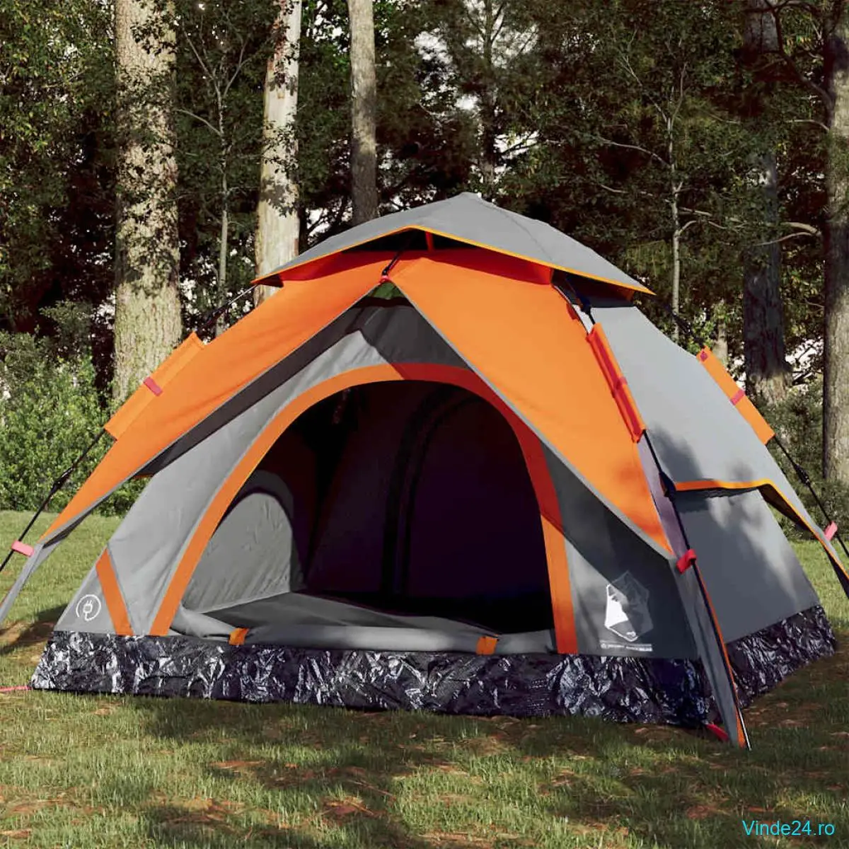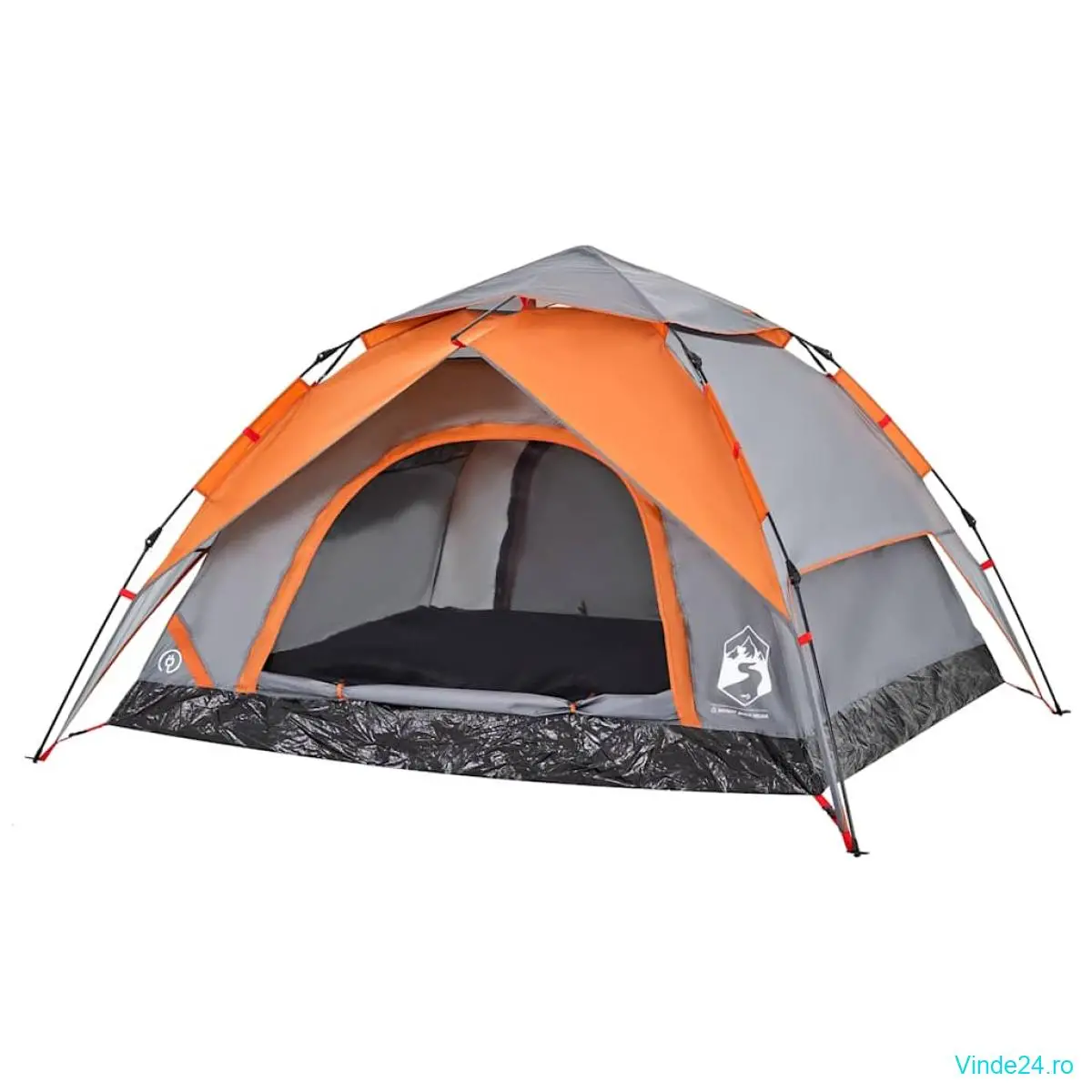vidaXL Cort camping cupolă 4 persoane, gri/portocaliu, setare rapidă