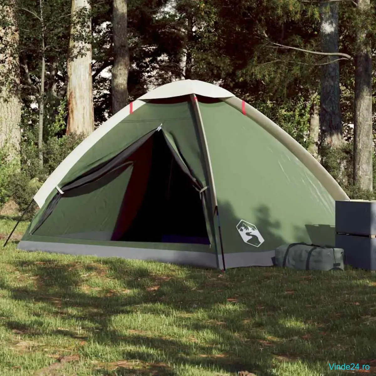 vidaXL Cort de camping cupolă pentru 4 persoane, verde, impermeabil