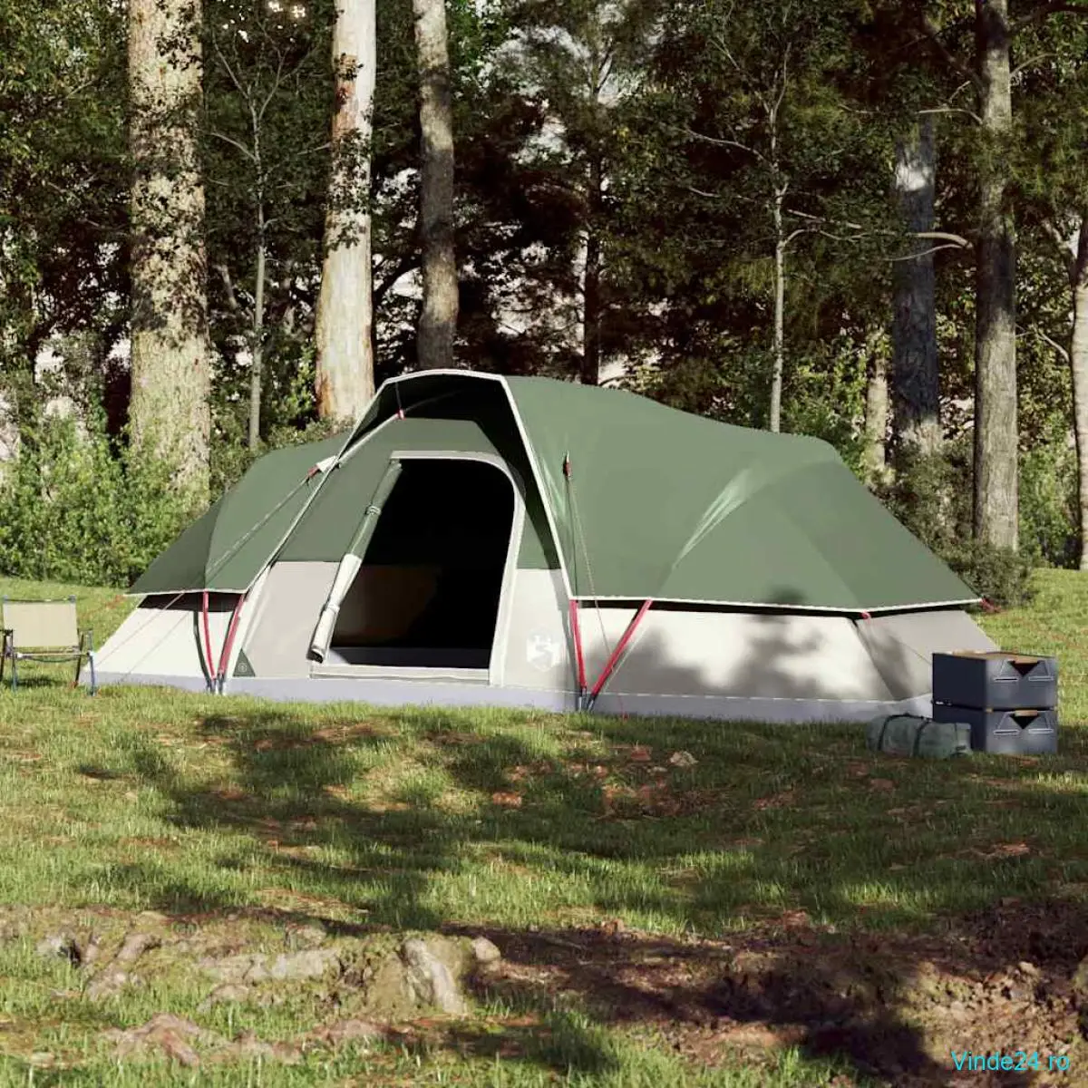 vidaXL Cort de camping cupolă pentru 9 persoane, verde, impermeabil