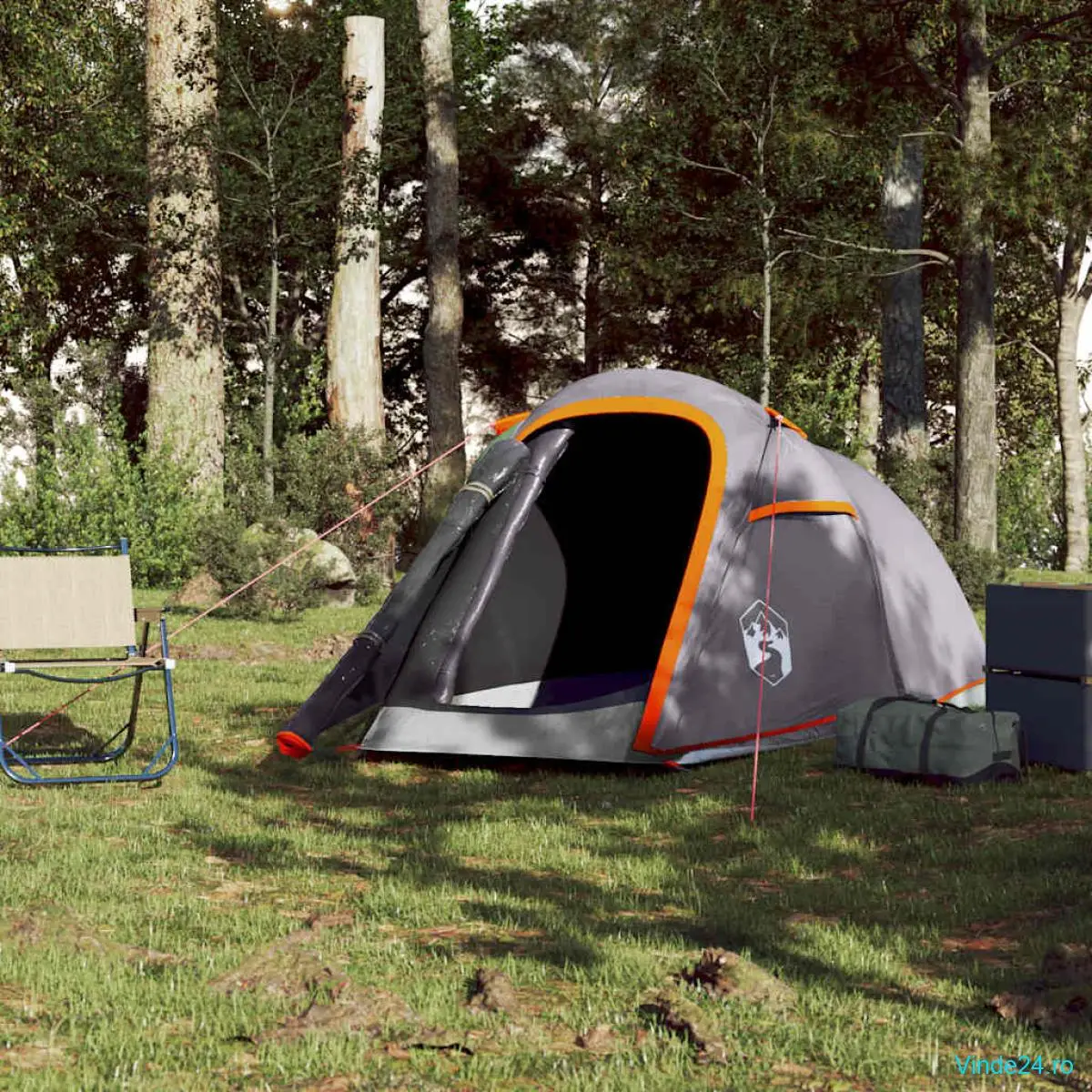 vidaXL Cort de camping tunel 2 persoane, gri/portocaliu, impermeabil