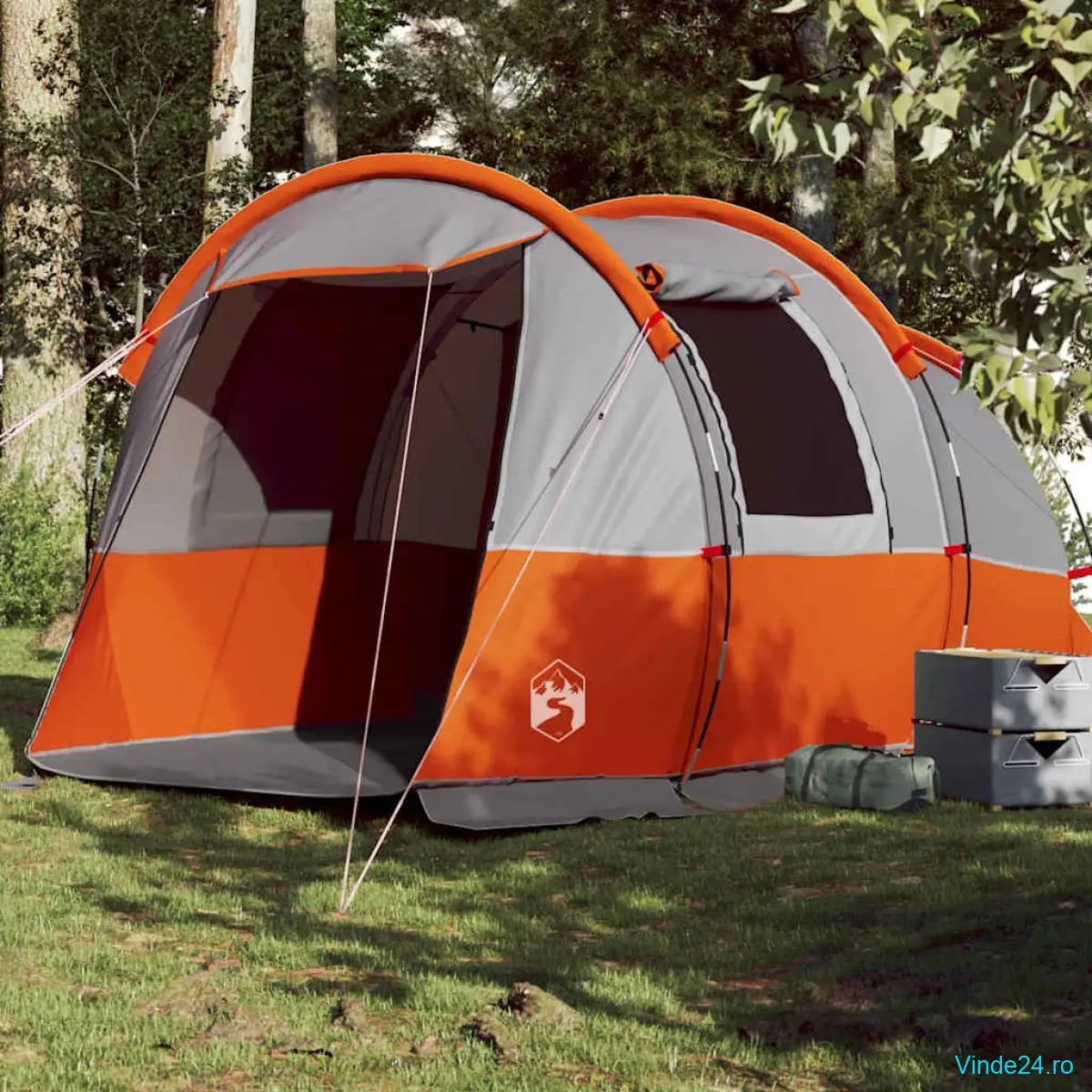 vidaXL Cort de camping tunel 4 persoane, gri/portocaliu, impermeabil