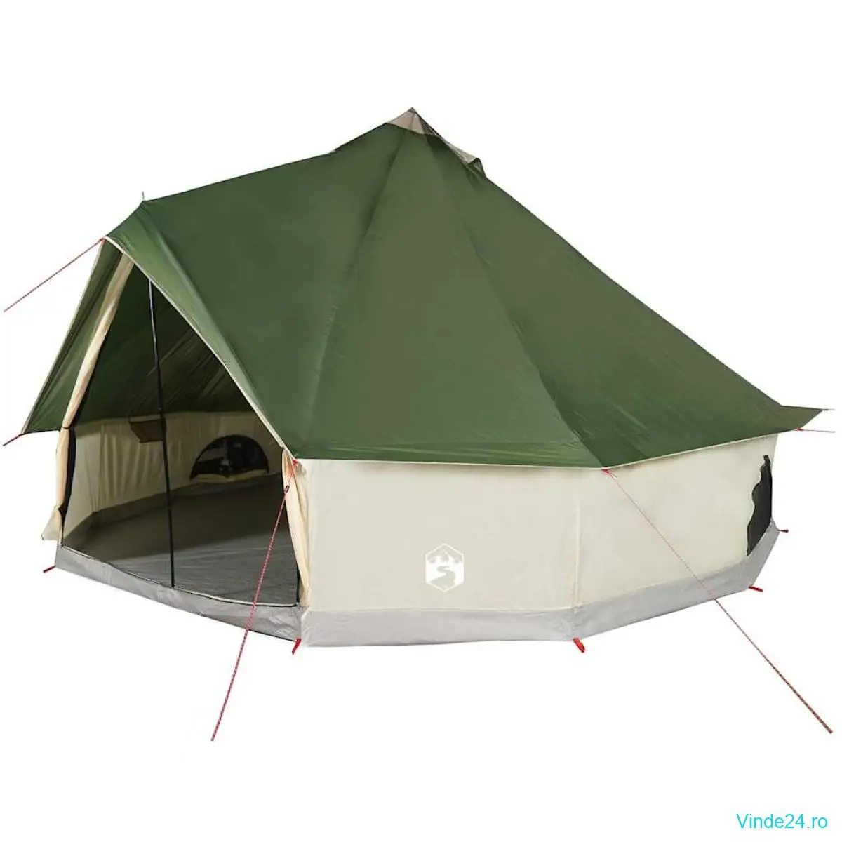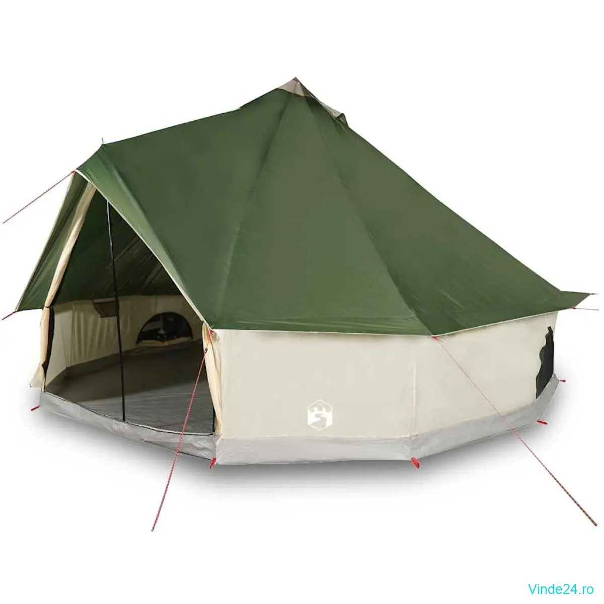vidaXL Cort de familie Tipi pentru 10 persoane, verde, impermeabil