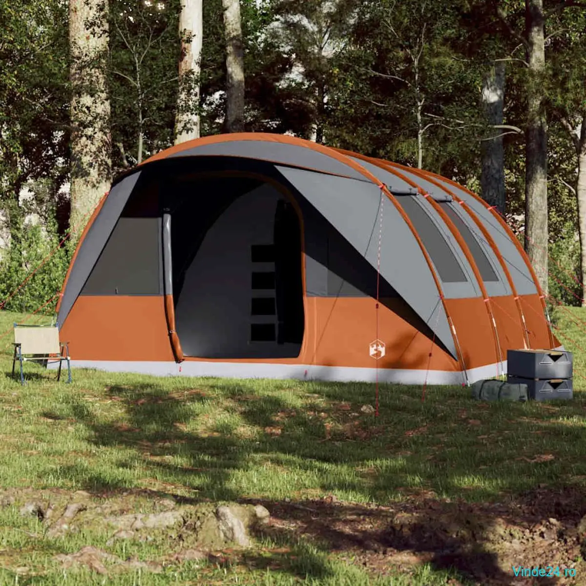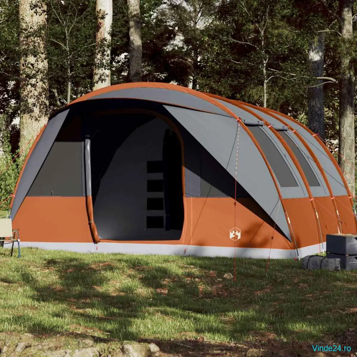 vidaXL Cort de familie tunel 7 persoane, gri/portocaliu, impermeabil