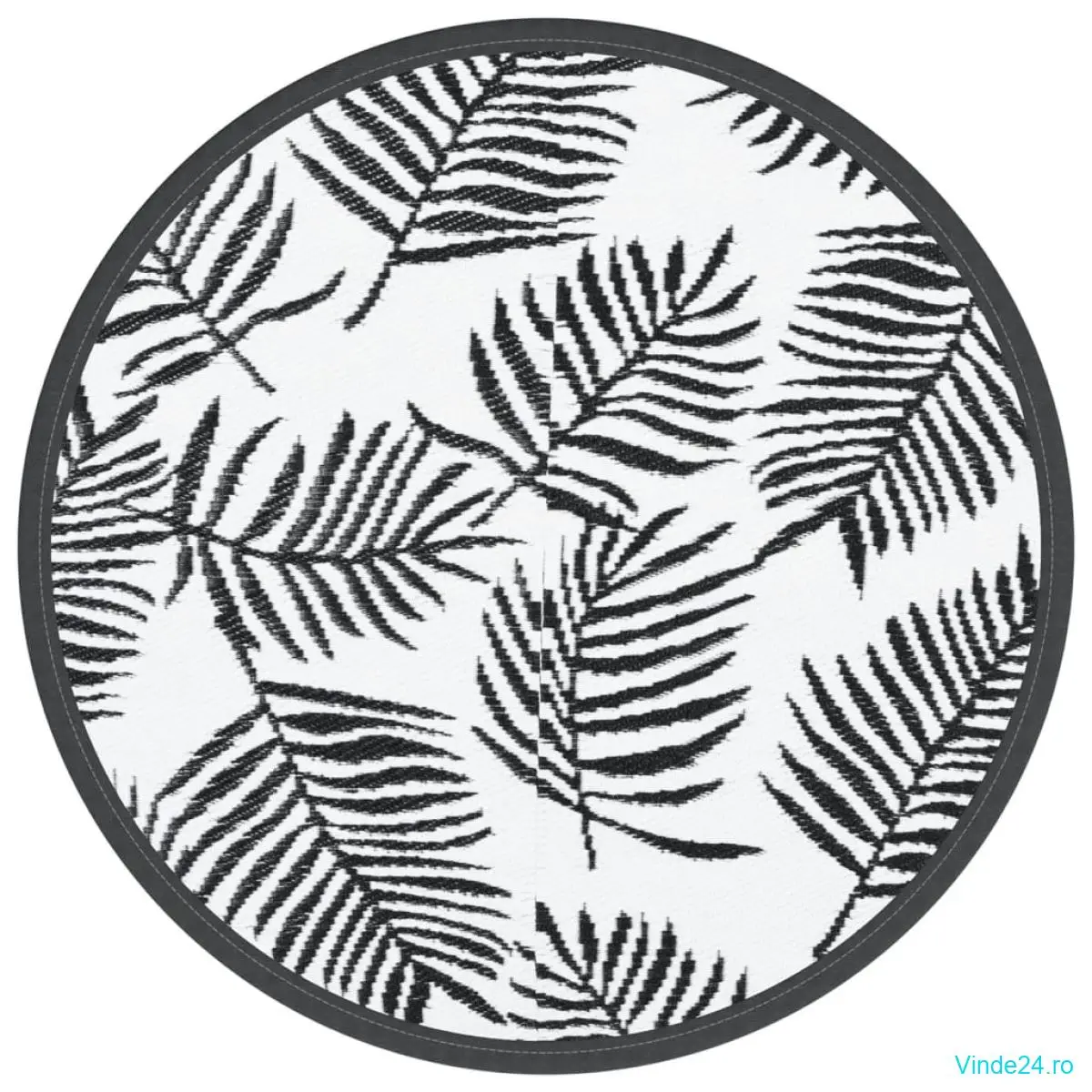 vidaXL Covor de exterior, ARAKIL alb și negru, Ø200 cm, PP