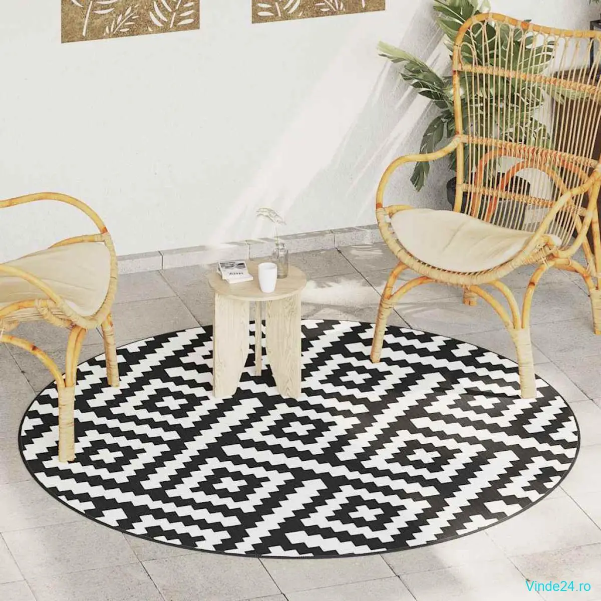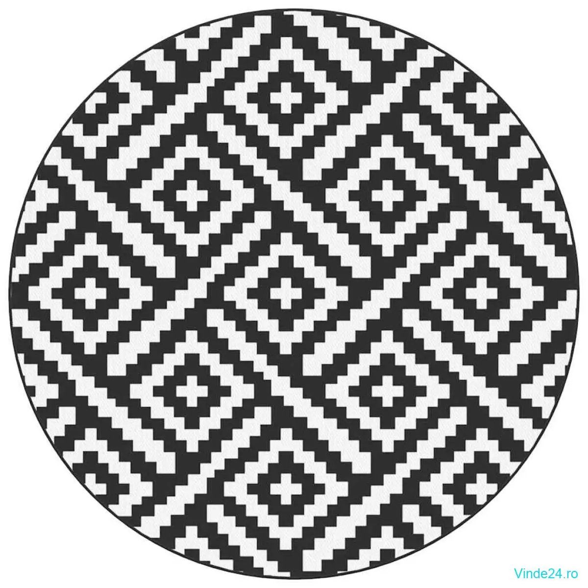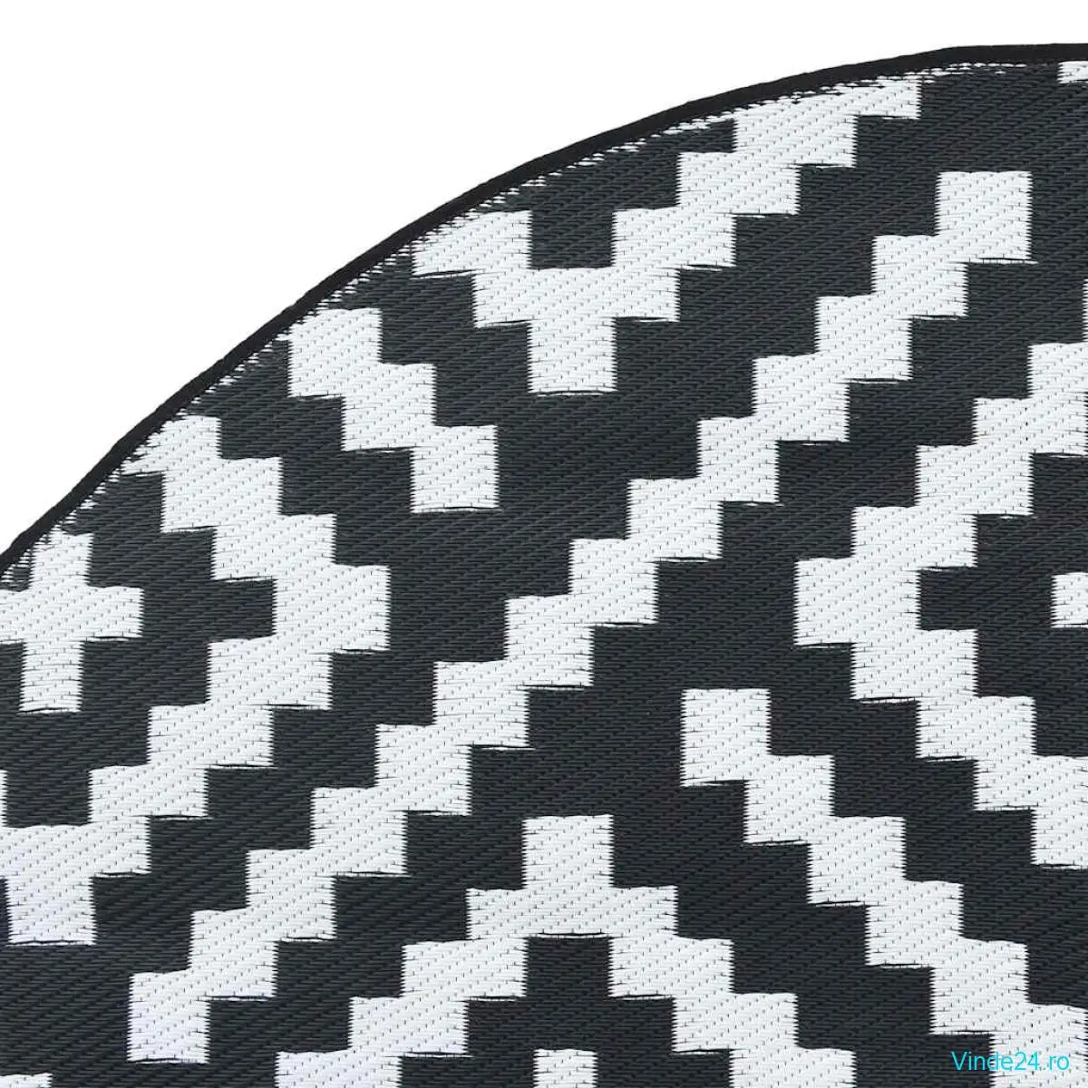 vidaXL Covor de exterior, ARAKIL alb și negru, Ø200 cm, PP