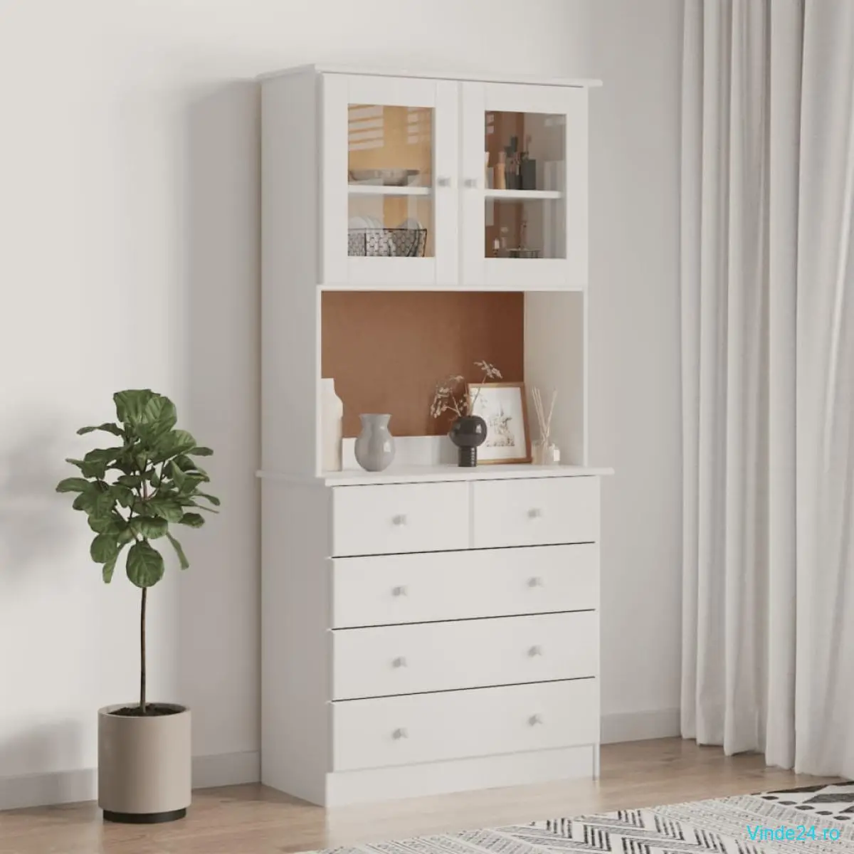 - Spațiu amplu de depozitare: Cu rafturi, sertare și uși din sticlă, dulapul înalt oferă o mulțime de opțiuni de depozitare și afișare pentru articolele dvs. preferate.