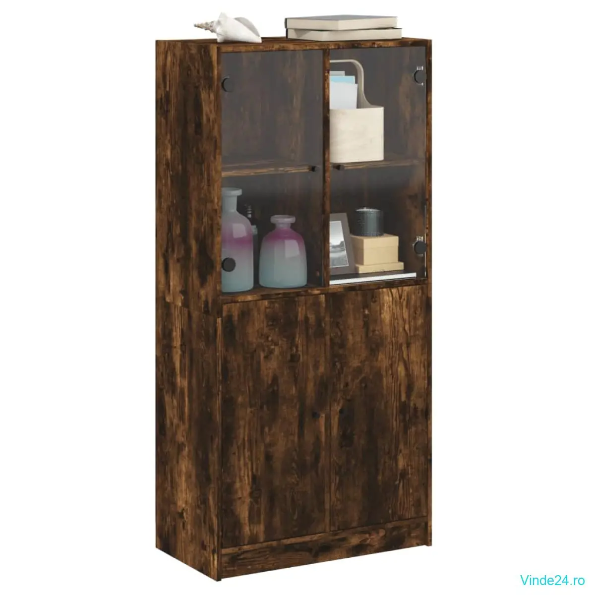 vidaXL Dulap înalt cu uși, stejar fumuriu, 68x37x142 cm, lemn compozit