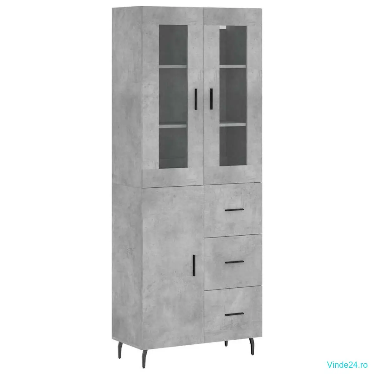 vidaXL Dulap înalt, gri beton, 69,5x34x180, lemn compozit