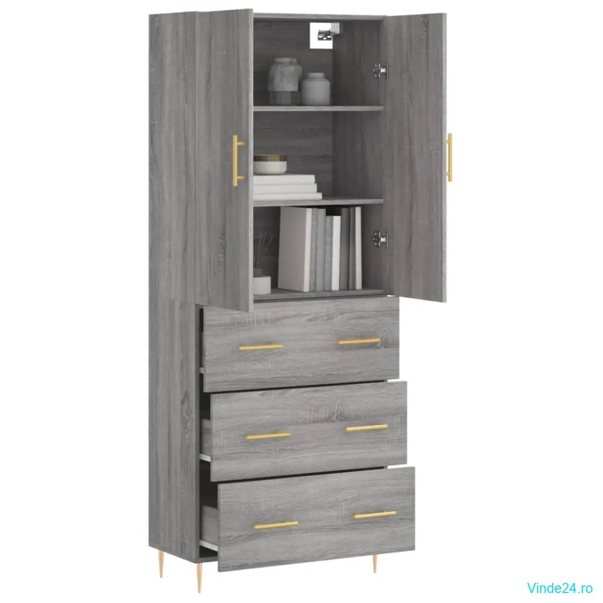 vidaXL Dulap înalt, gri sonoma, 69,5x34x180 cm, lemn compozit