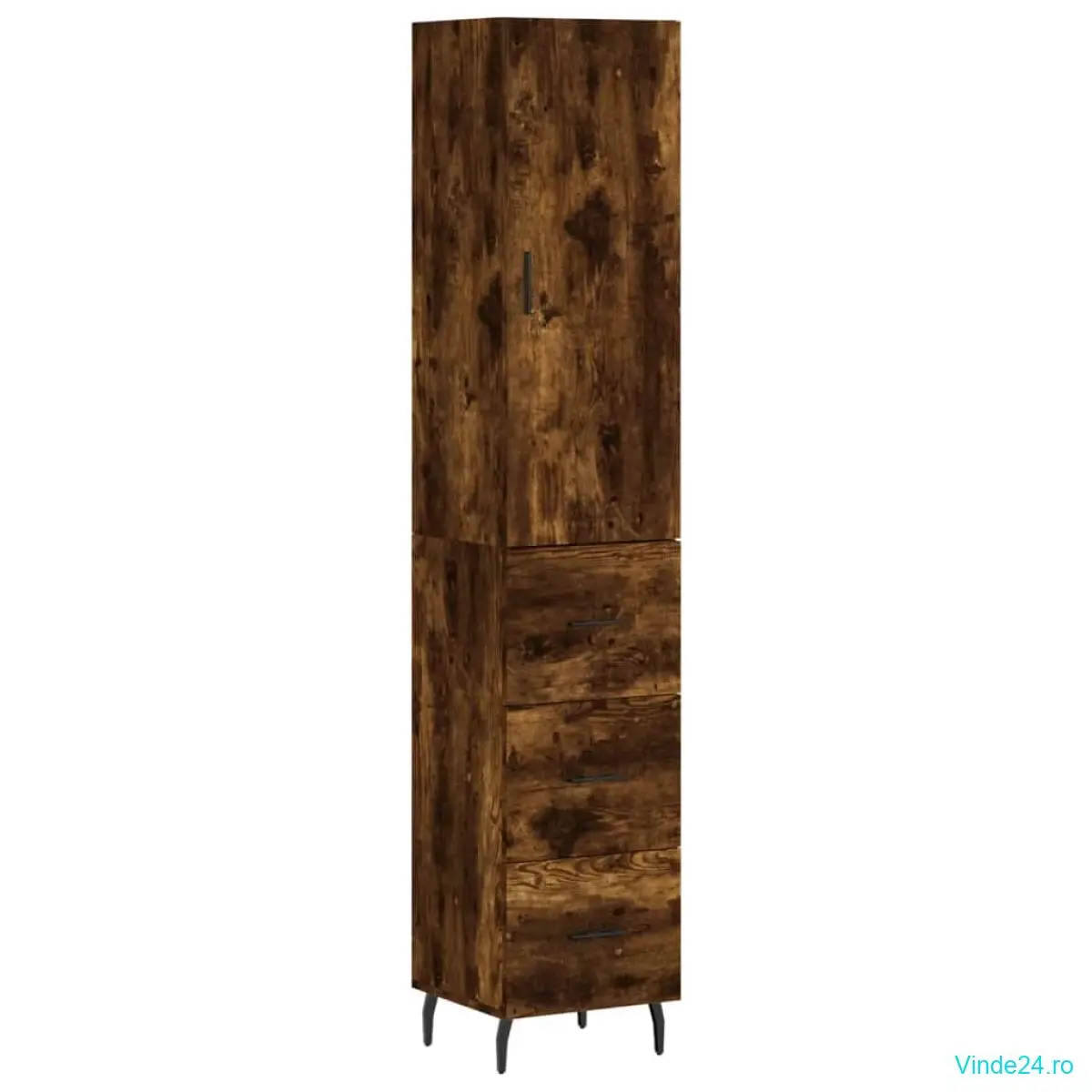vidaXL Dulap înalt, stejar fumuriu, 34,5x34x180 cm, lemn prelucrat