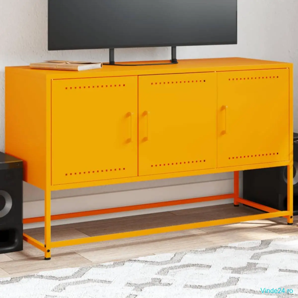 Acest dulap TV cu un stil industrial este un plus atemporal pentru camera de zi sau dormitor.