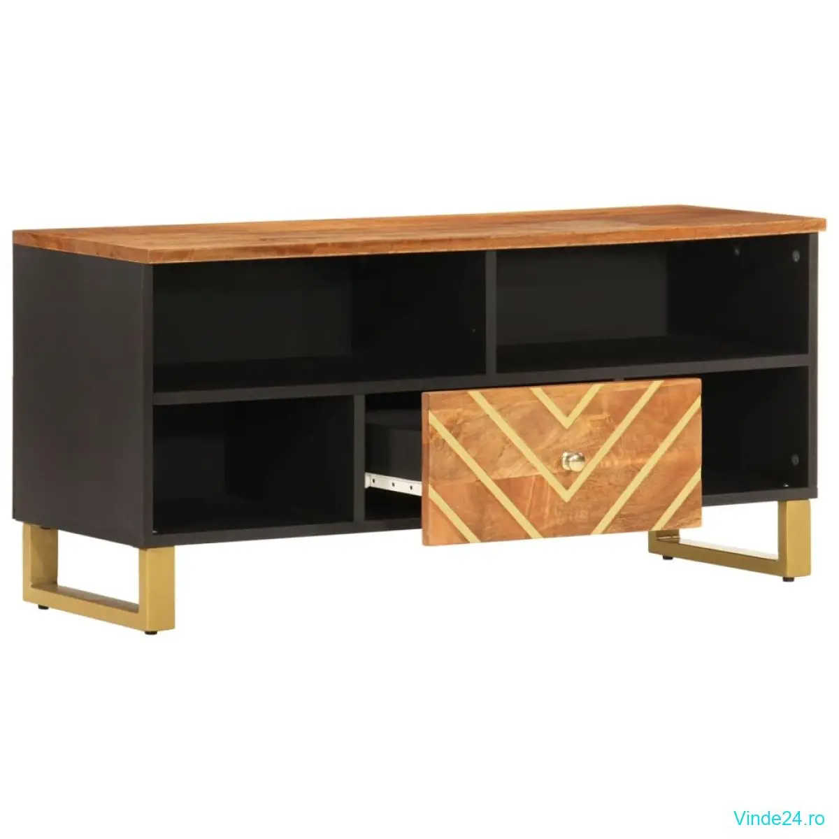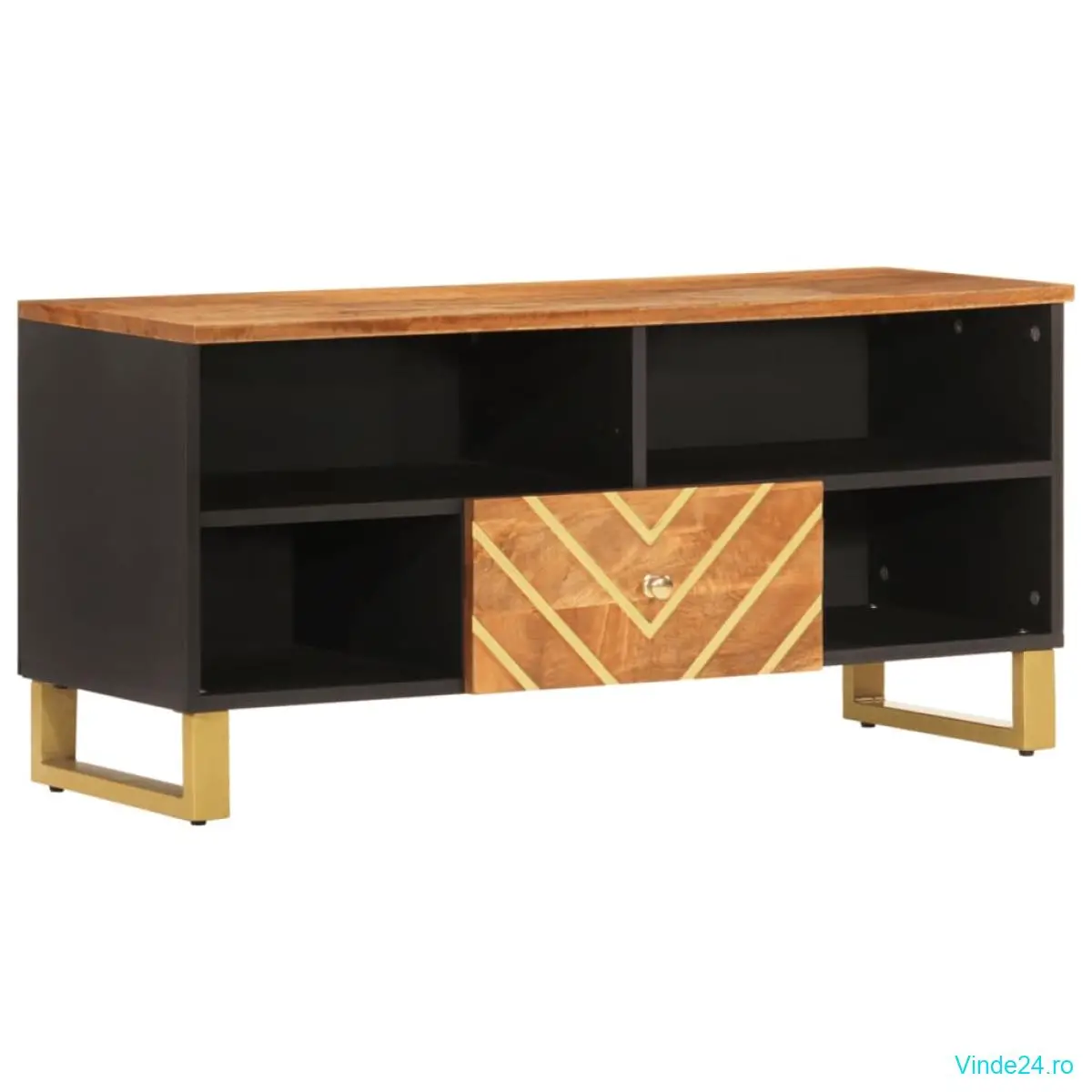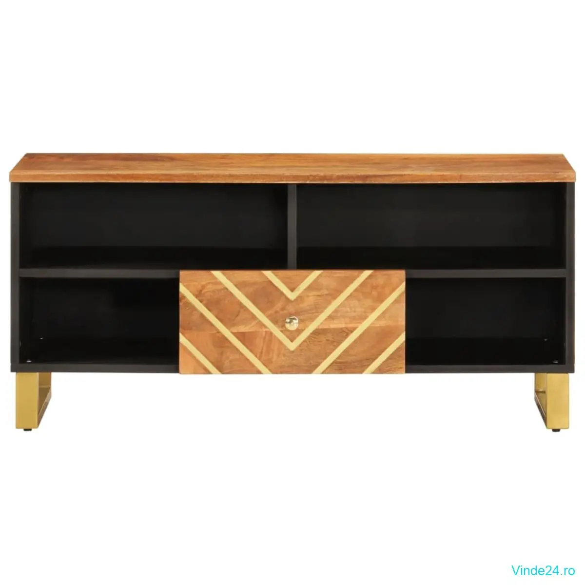 vidaXL Dulap TV, maro și negru, 100x33,5x46 cm, lemn masiv de mango