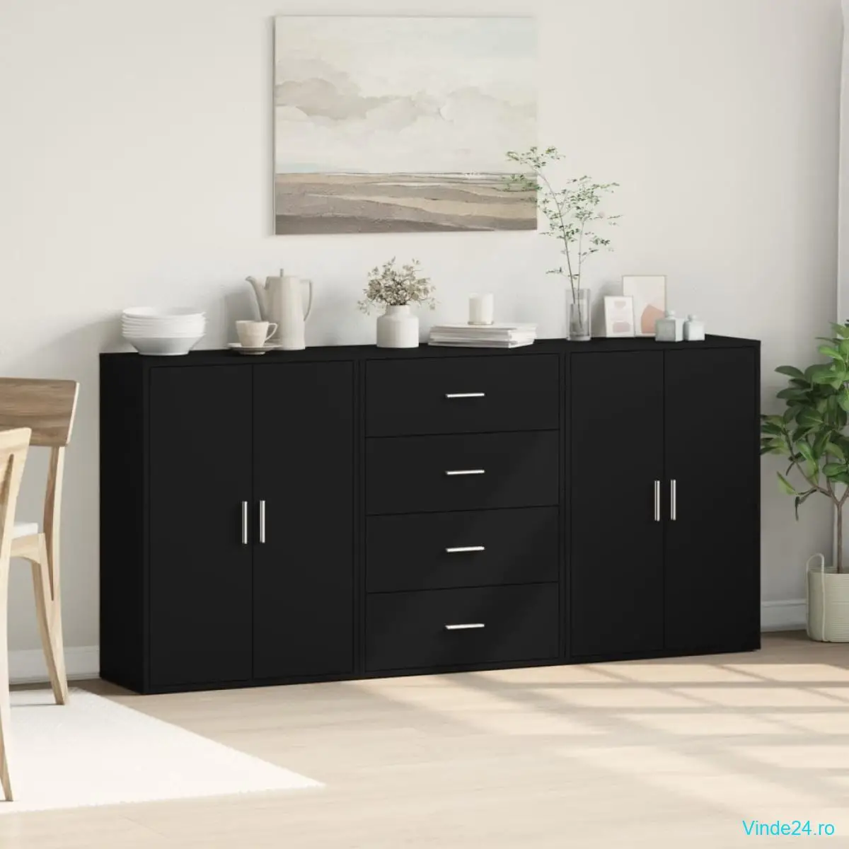 vidaXL Dulapuri, 3 buc., negru, 60x31x84 cm, lemn prelucrat