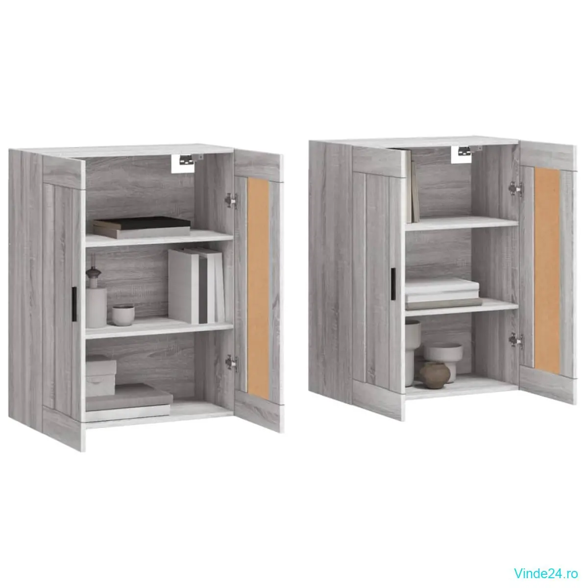 vidaXL Dulapuri montate pe perete, 2 buc, gri Sonoma, lemn prelucrat