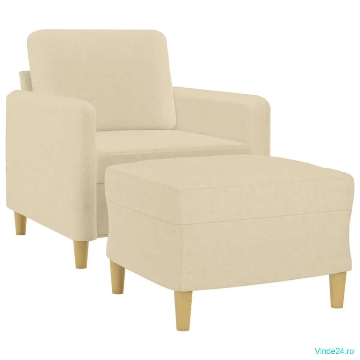 vidaXL Fotoliu canapea cu taburet, crem, 60 cm, material textil