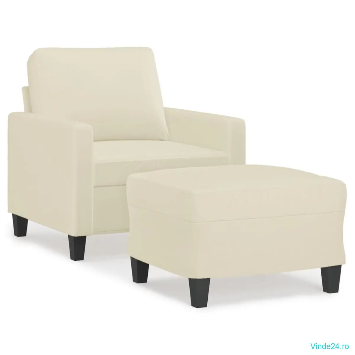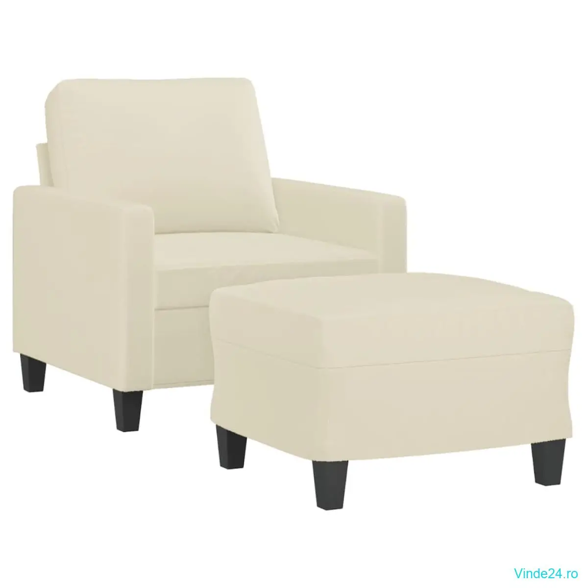 vidaXL Fotoliu canapea cu taburet, crem, 60 cm, piele ecologică