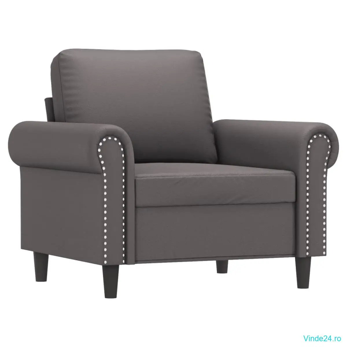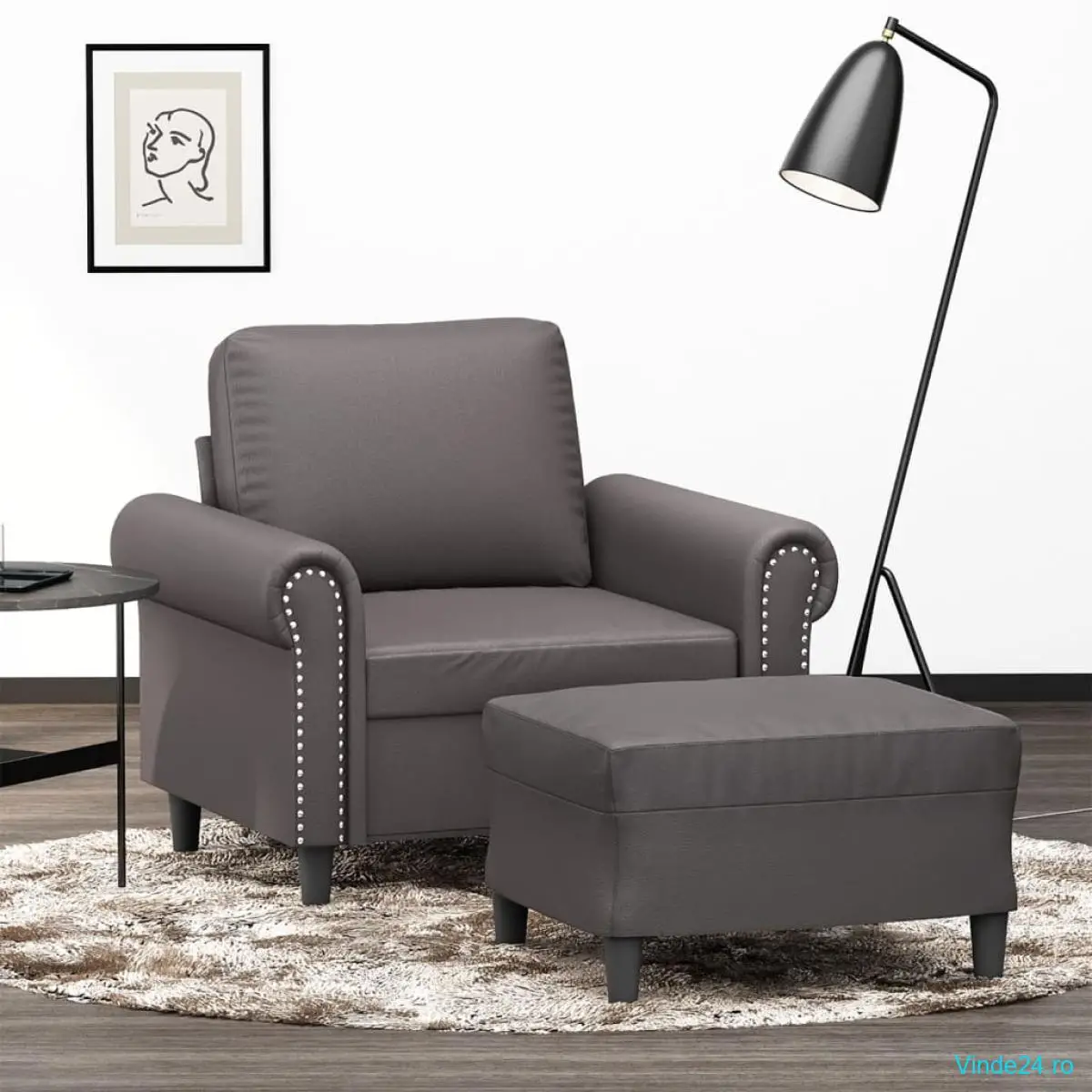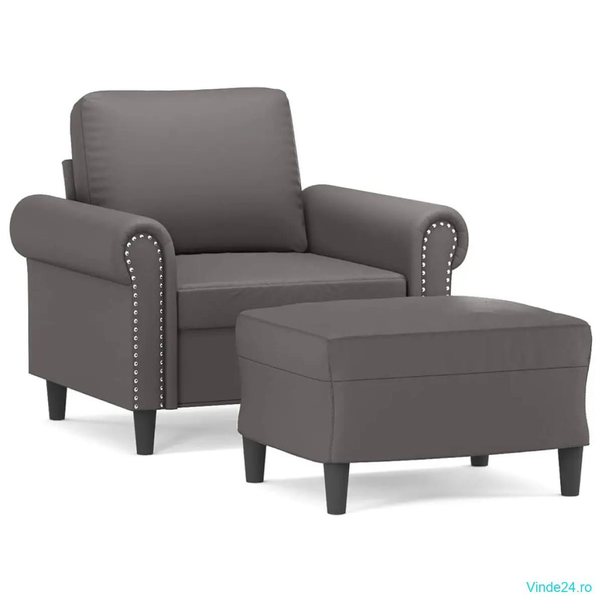 vidaXL Fotoliu canapea cu taburet, gri, 60 cm, piele ecologică