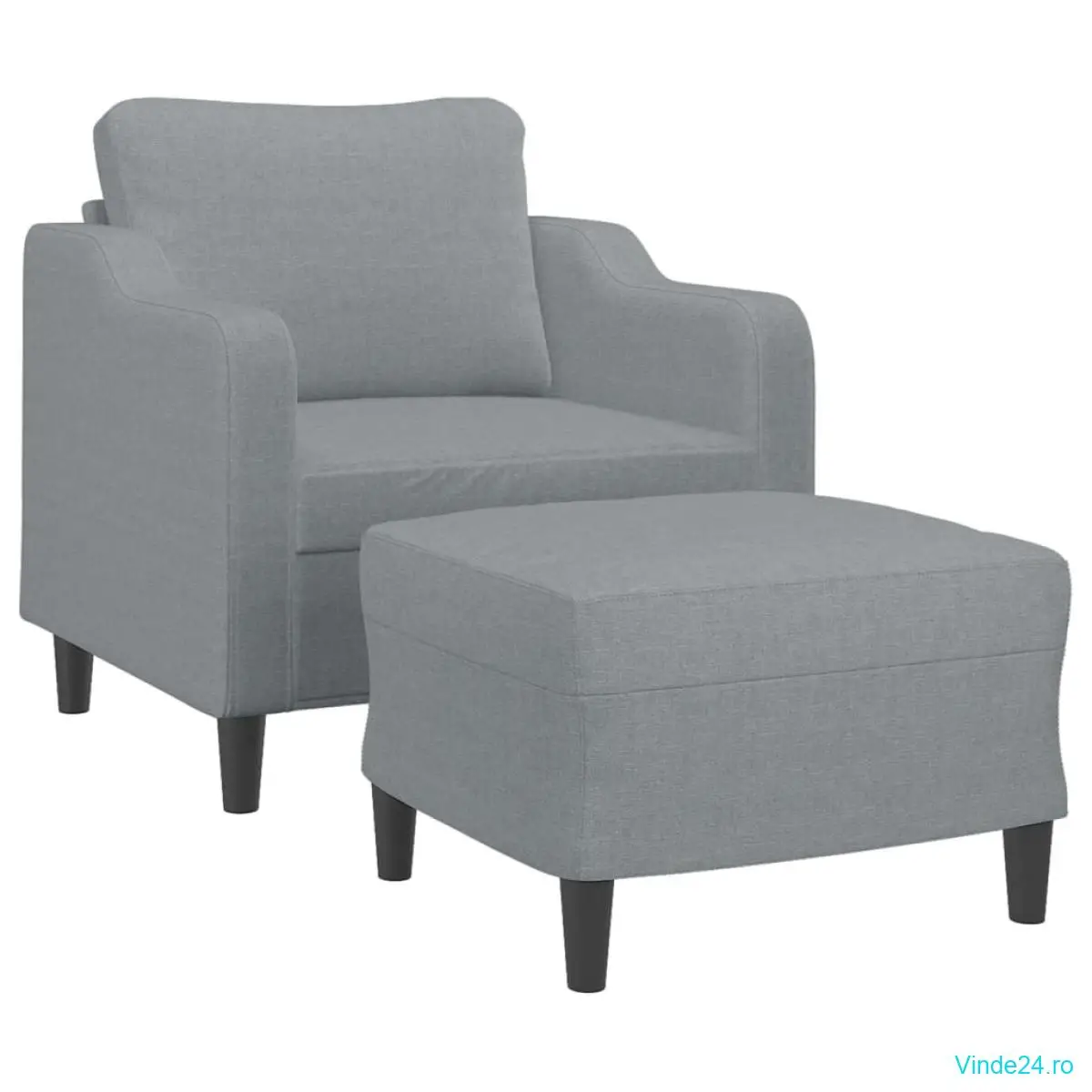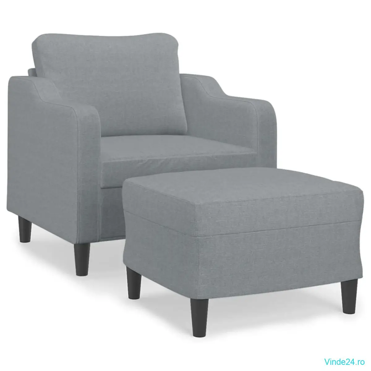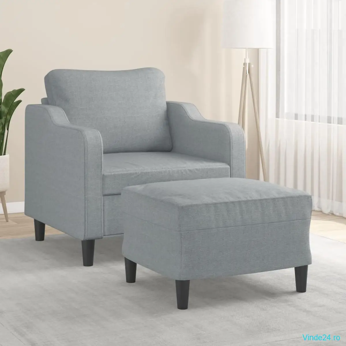 vidaXL Fotoliu canapea cu taburet, gri deschis, 60 cm, textil