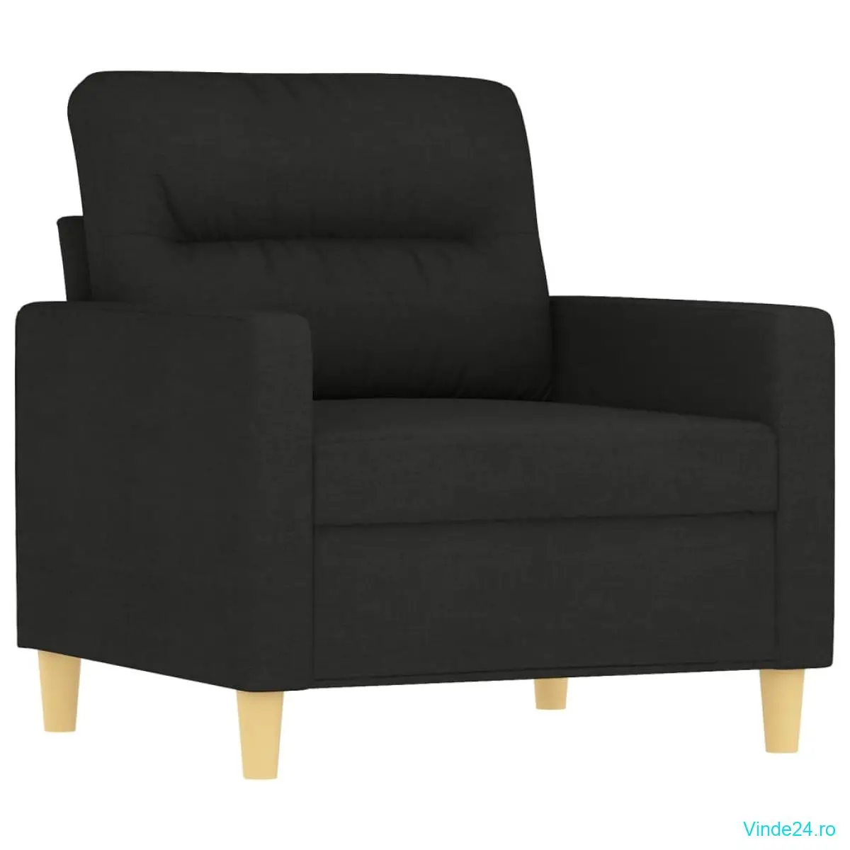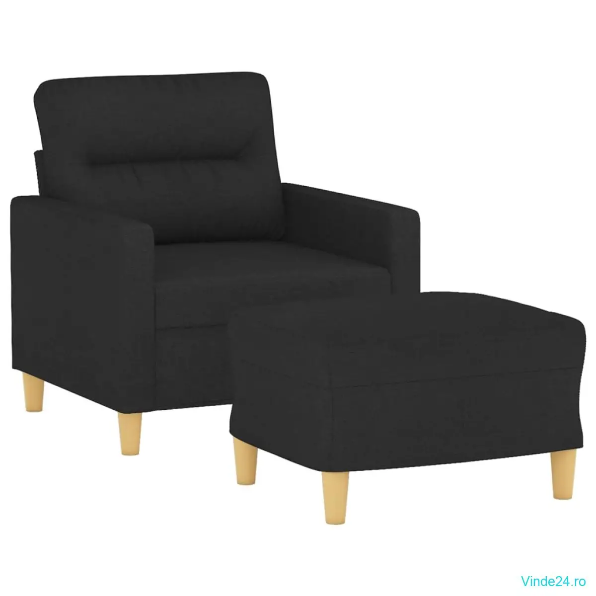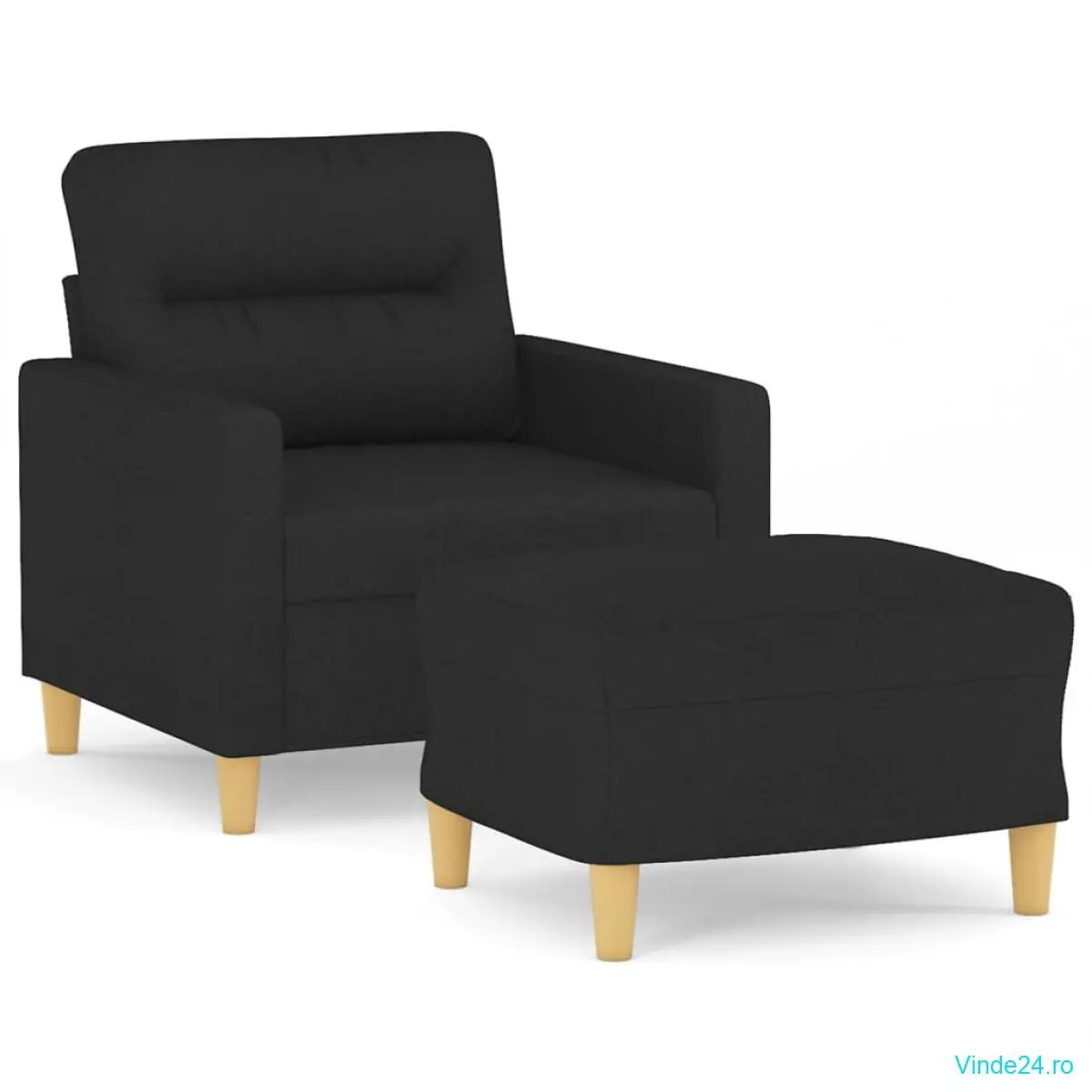 vidaXL Fotoliu canapea cu taburet, negru, 60 cm, material textil