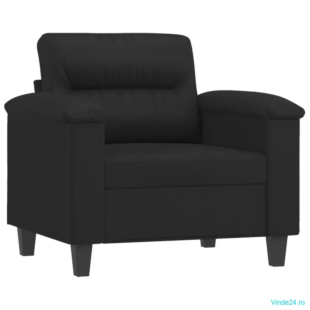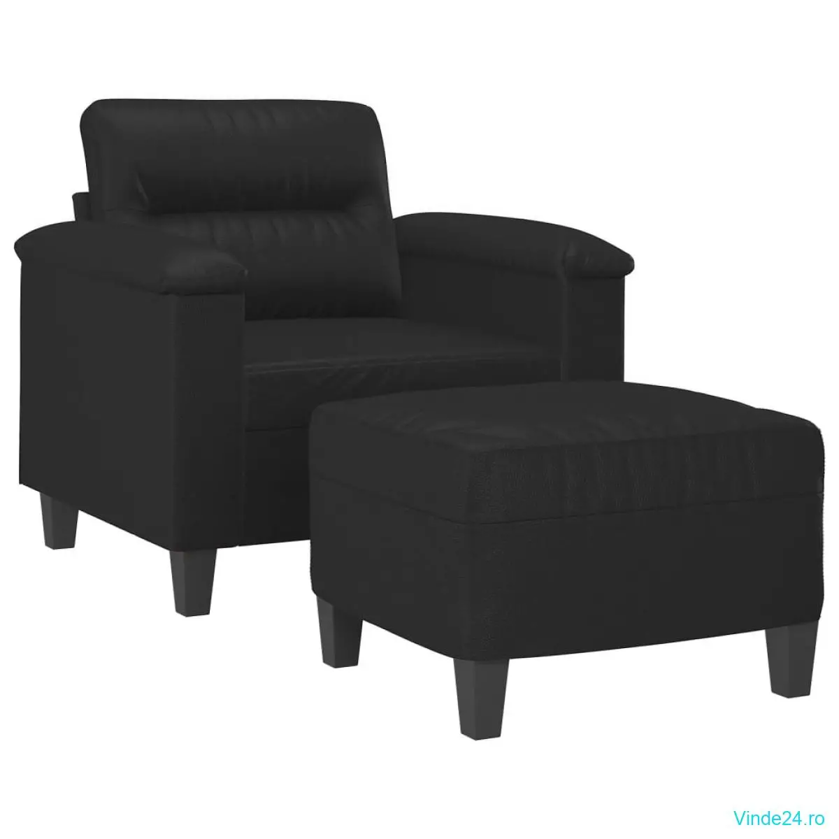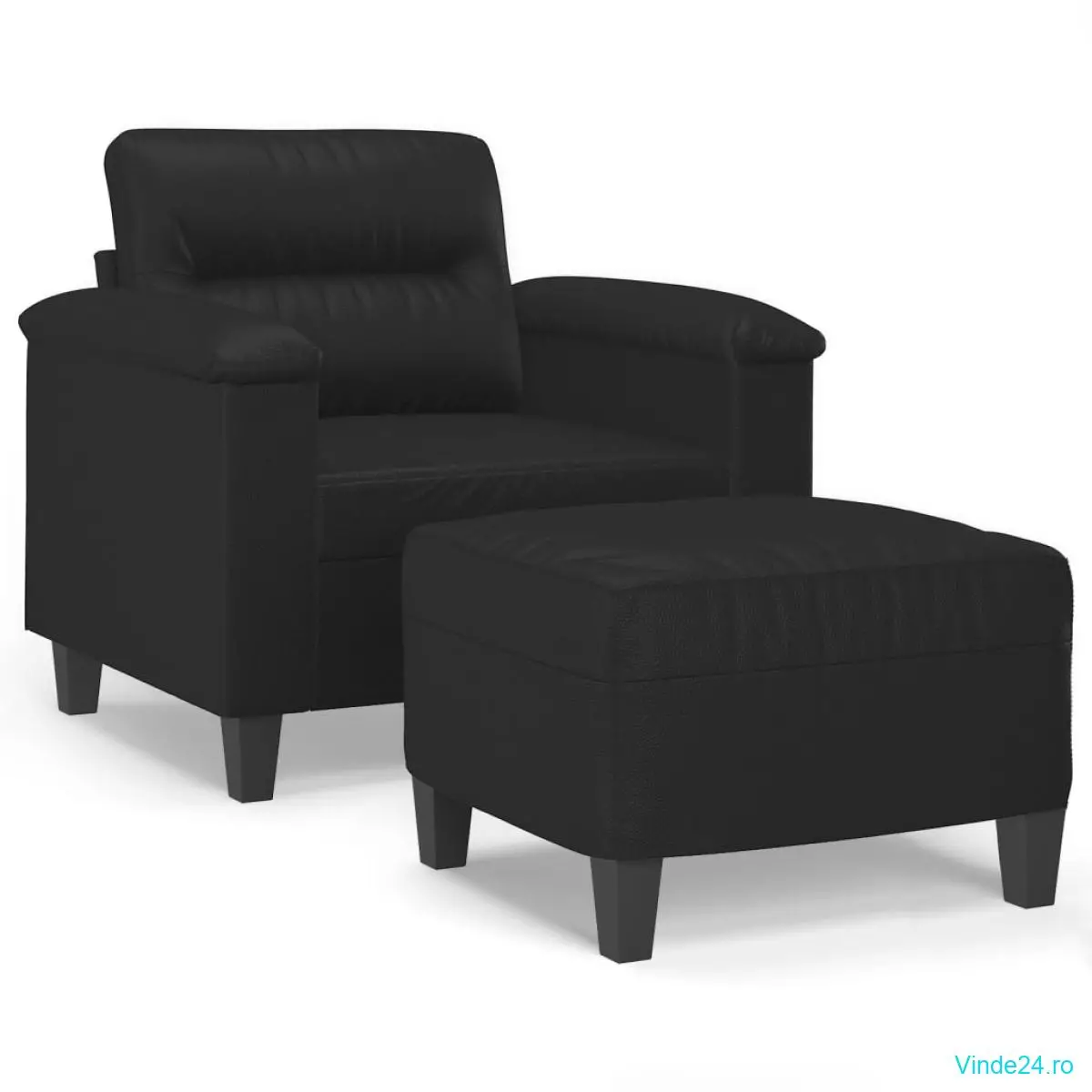 vidaXL Fotoliu canapea cu taburet, negru, 60 cm, piele ecologică