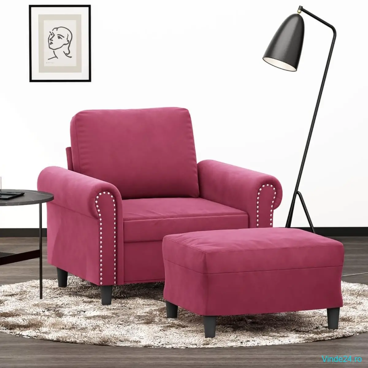 vidaXL Fotoliu canapea cu taburet, roșu vin, 60 cm, catifea