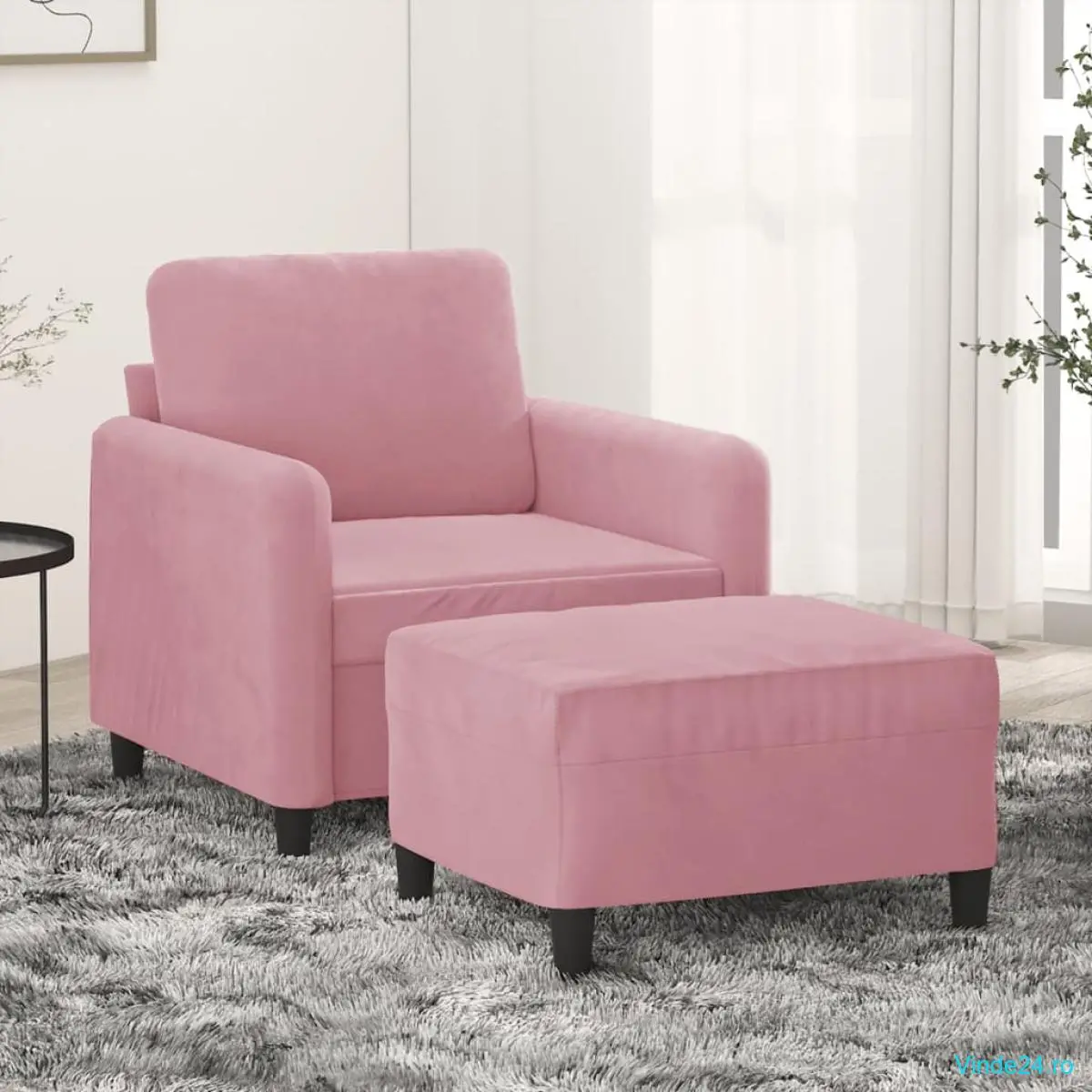 vidaXL Fotoliu canapea cu taburet, roz, 60 cm, catifea