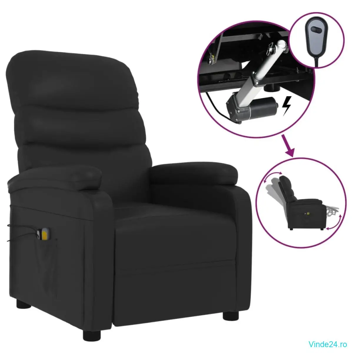 - Funcție de ridicare: Acest fotoliu rabatabil este echipat cu un motor electric pentru funcția de ridicare. Dispune de 3 poziții de înclinare, astfel încât să puteți regla cu ușurință spătarul și suportul pentru picioare cu ajutorul comenzii manuale incluse, cu 2 butoane, în funcție de confortul dvs.