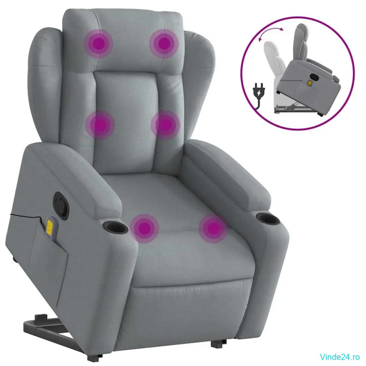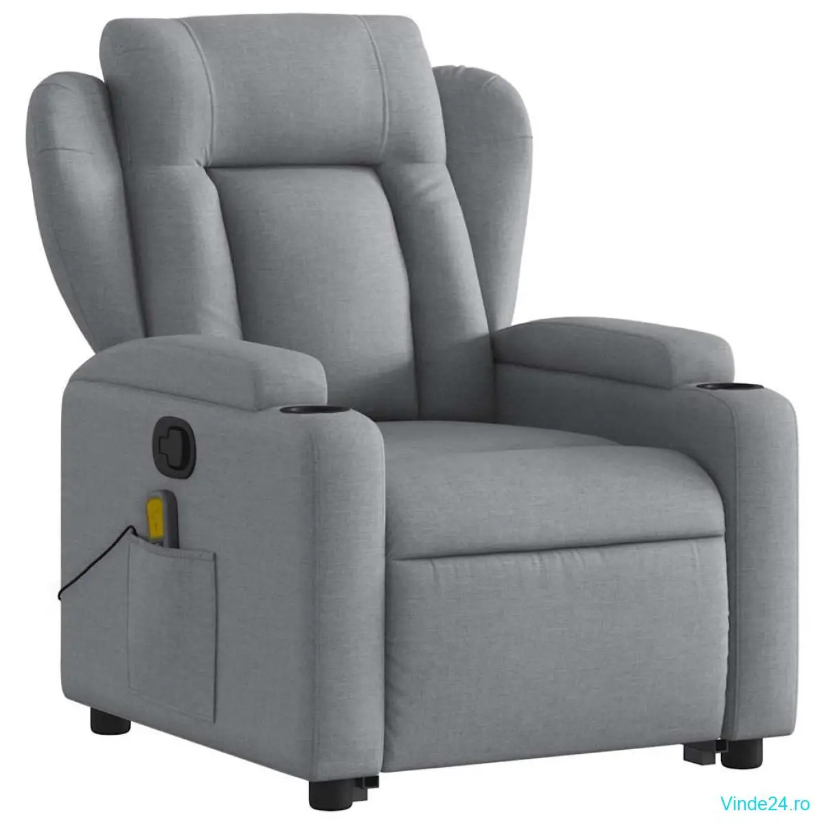 vidaXL Fotoliu de masaj rabatabil cu ridicare, gri deschis, textil