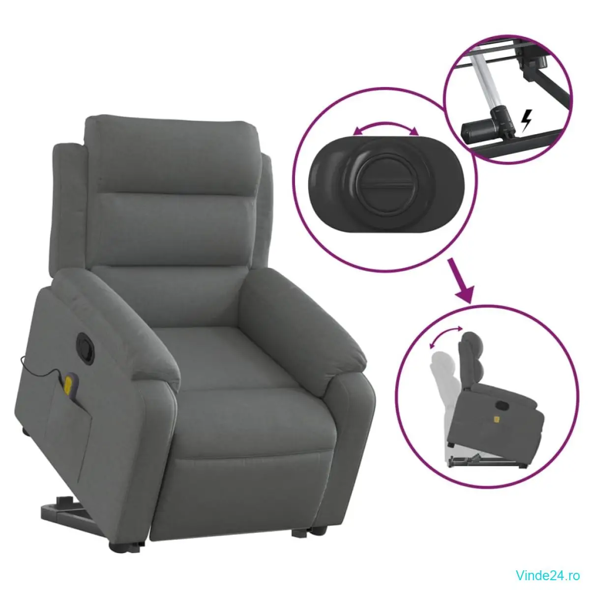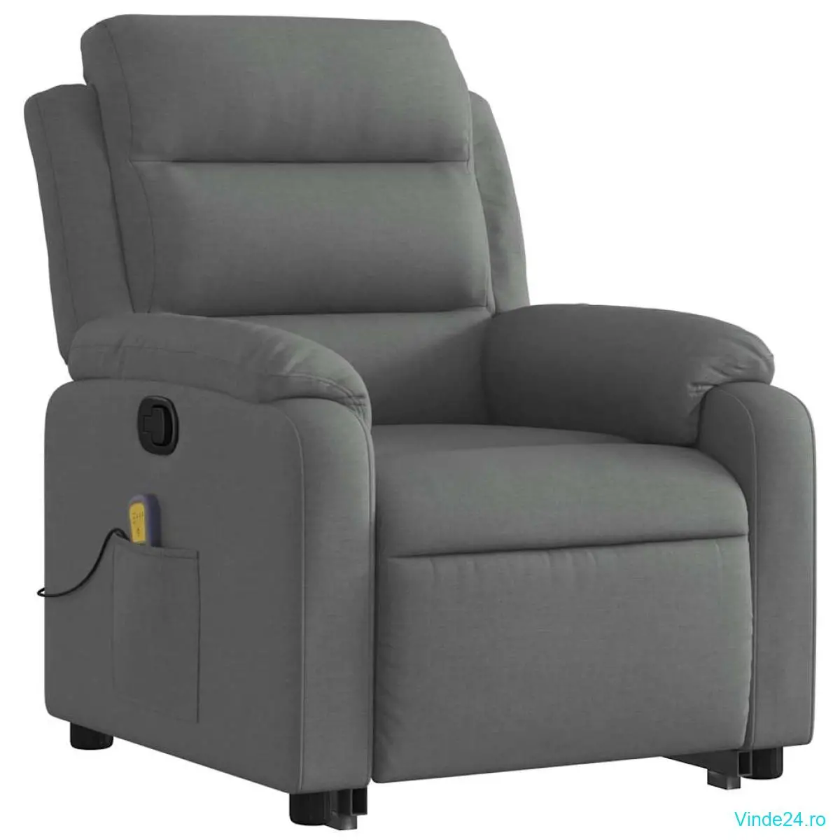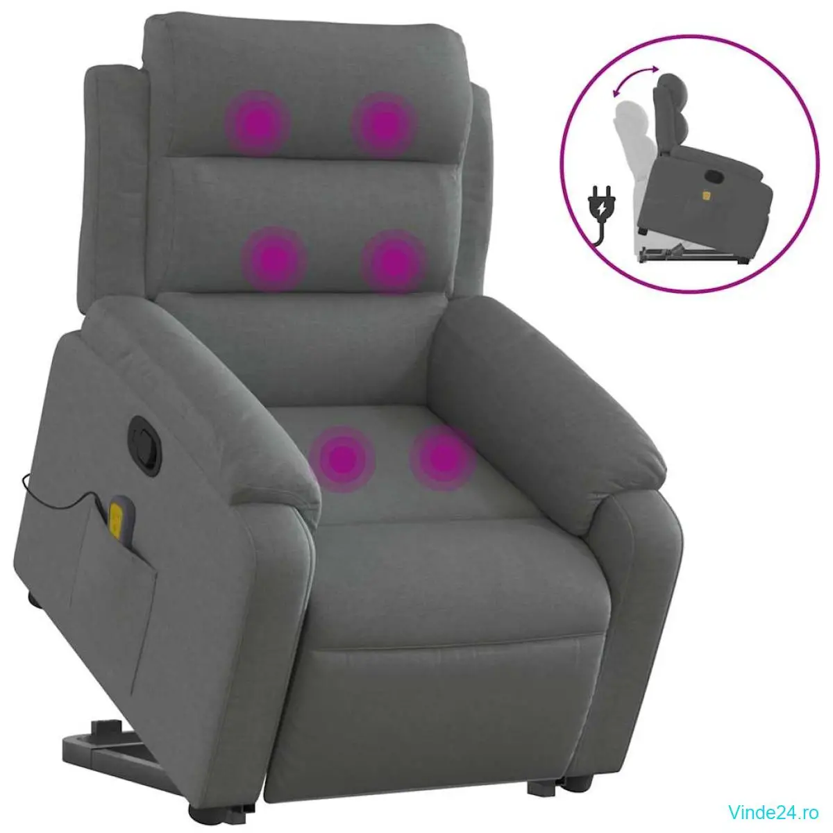 vidaXL Fotoliu de masaj rabatabil cu ridicare, gri închis, textil