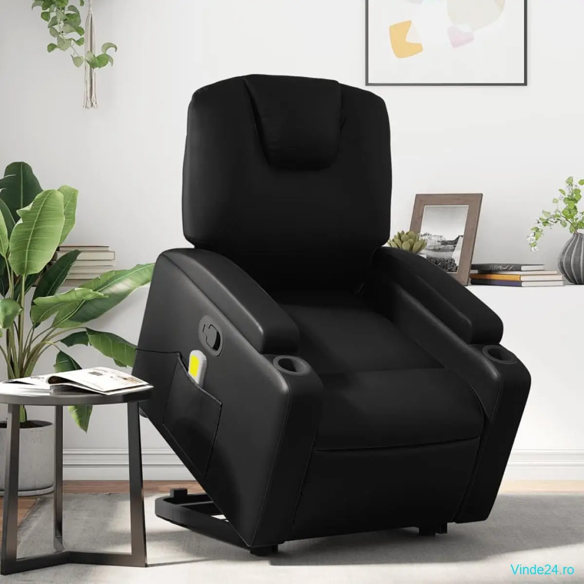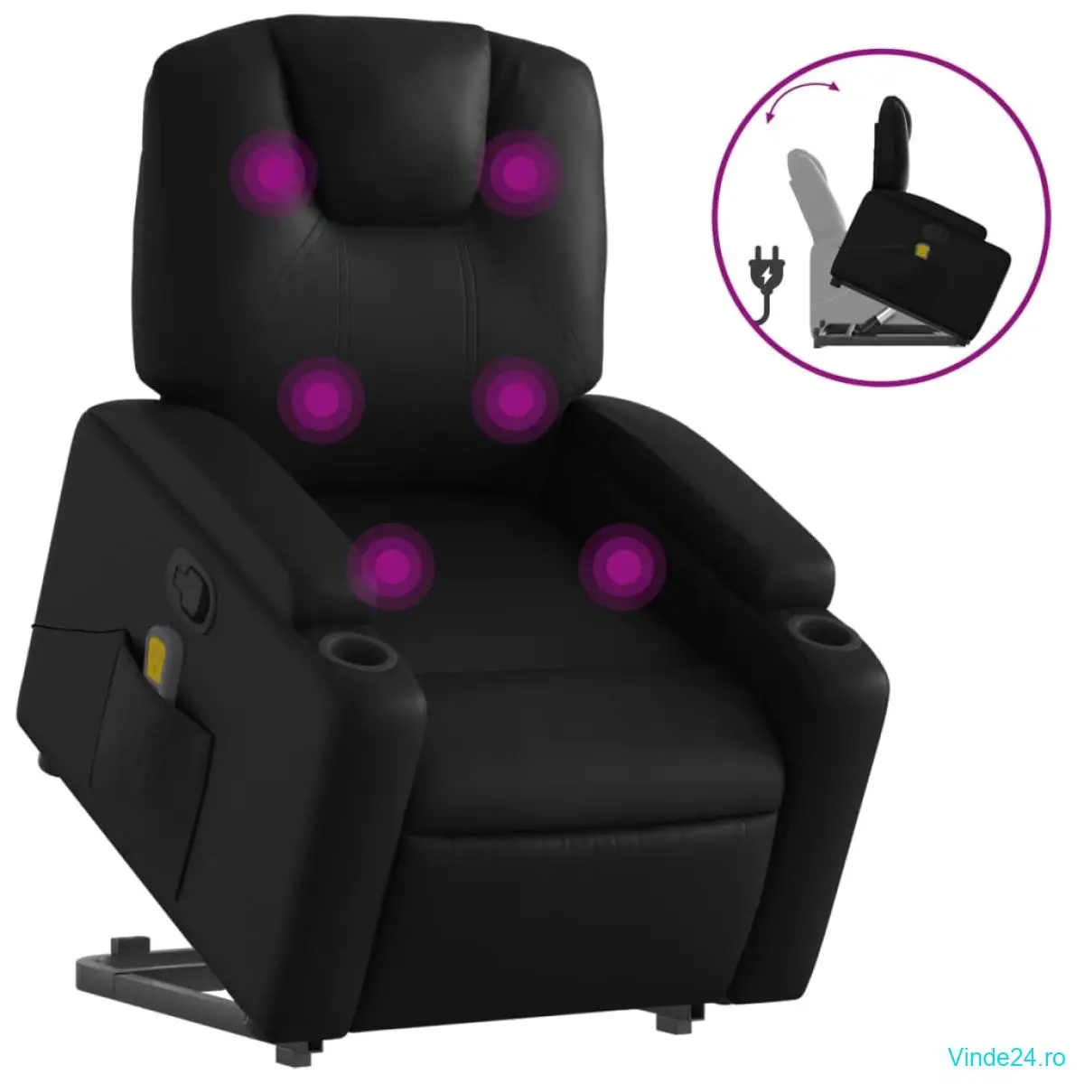 vidaXL Fotoliu de masaj rabatabil cu ridicare negru piele ecologică