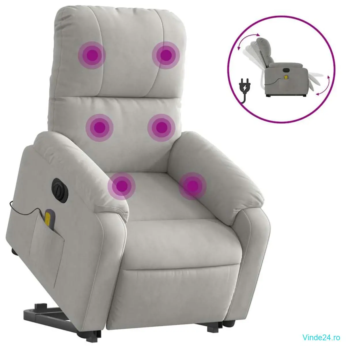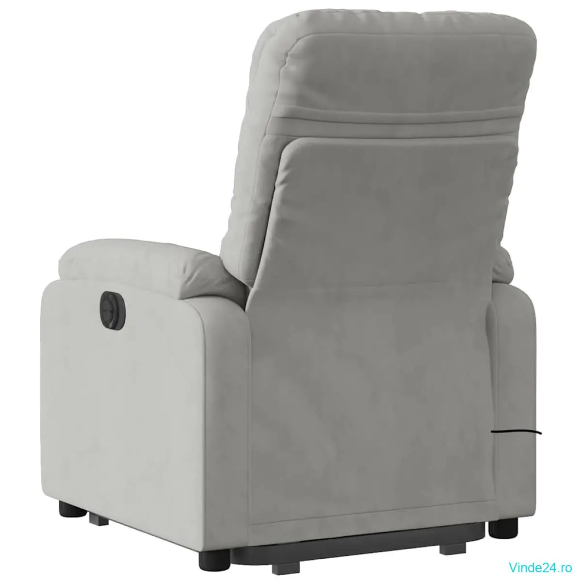 vidaXL Fotoliu de masaj rabatabil electric cu ridicare gri, microfibră