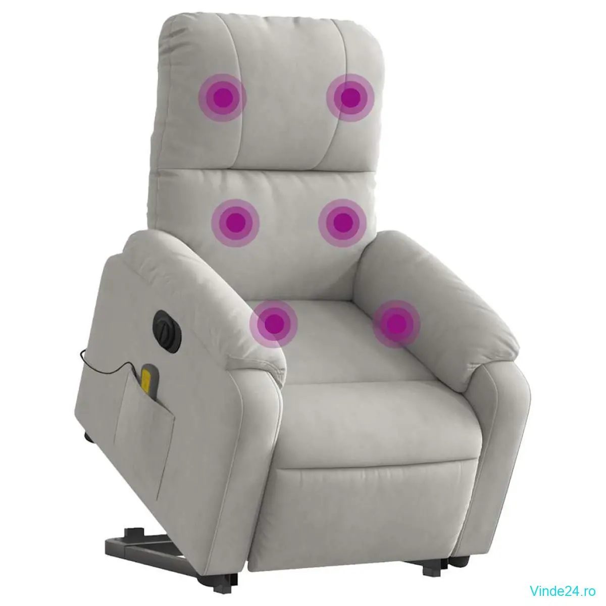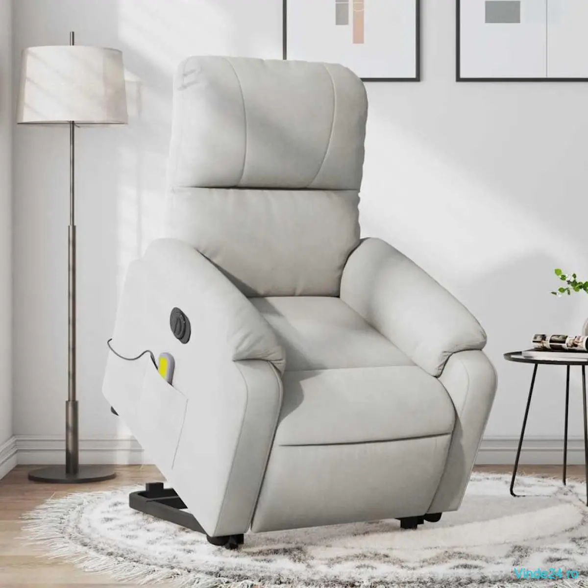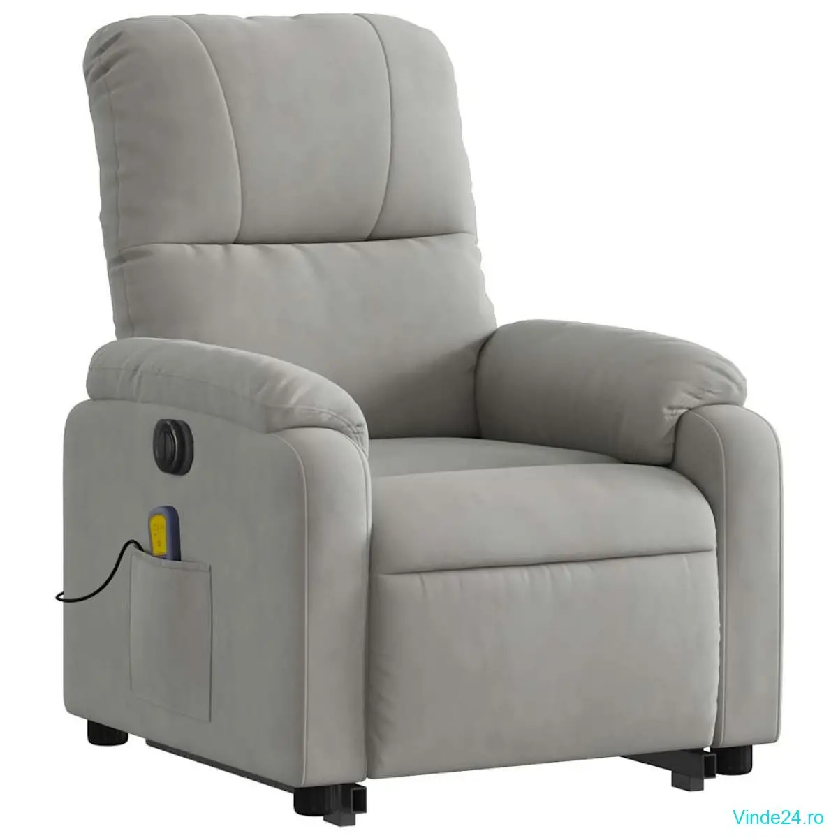 vidaXL Fotoliu de masaj rabatabil electric cu ridicare gri, microfibră