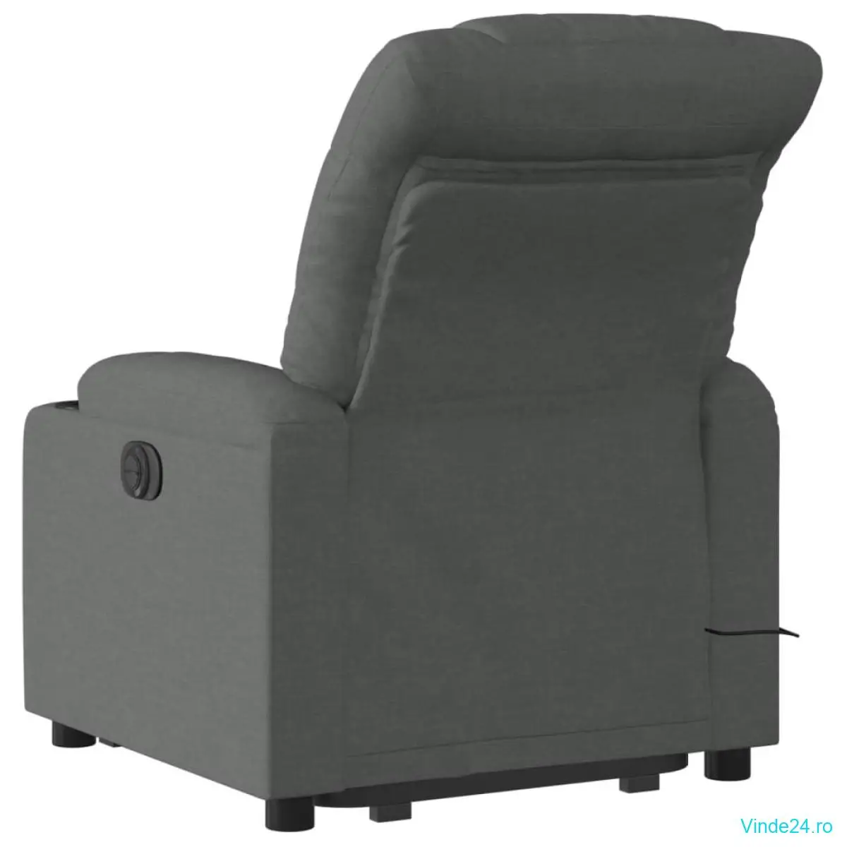 vidaXL Fotoliu electric masaj rabatabil cu ridicare, gri închis textil