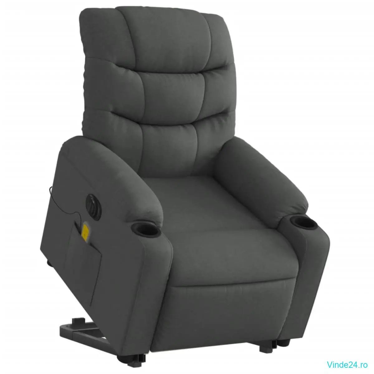 vidaXL Fotoliu electric masaj rabatabil cu ridicare, gri închis textil