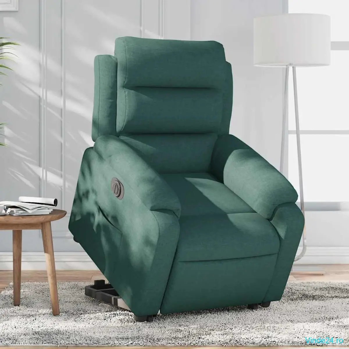 vidaXL Fotoliu electric rabatabil cu ridicare, verde închis, textil