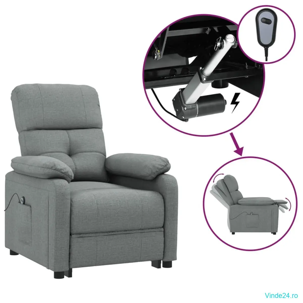 vidaXL Fotoliu rabatabil electric, gri închis, material textil