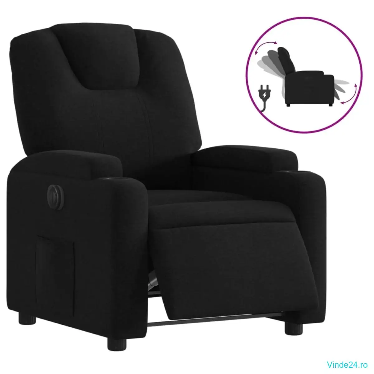 vidaXL Fotoliu rabatabil electric, negru, material textil