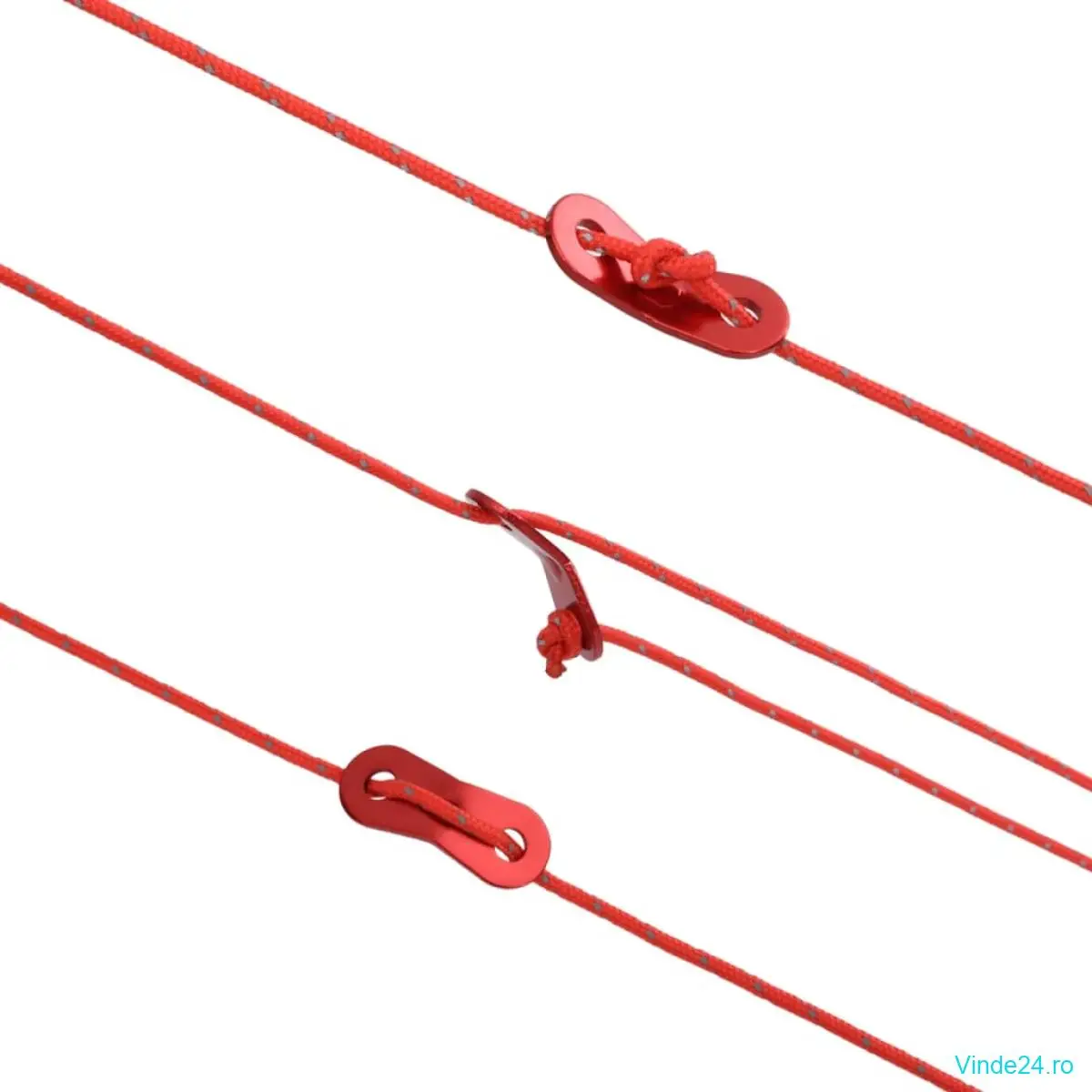 - Design practic: Dispozitivele de pretensionare din aliaj de aluminiu, cu un design cu 2 orificii, servesc la fixarea frânghiei împotriva vântului și la reglarea lungimii acesteia, făcându-le perfecte pentru blocarea frânghiei pe loc și pentru prevenirea oricărei alunecări nedorite. Acest lucru este extrem de practic și convenabil pentru activitățile dumneavoastră în aer liber.