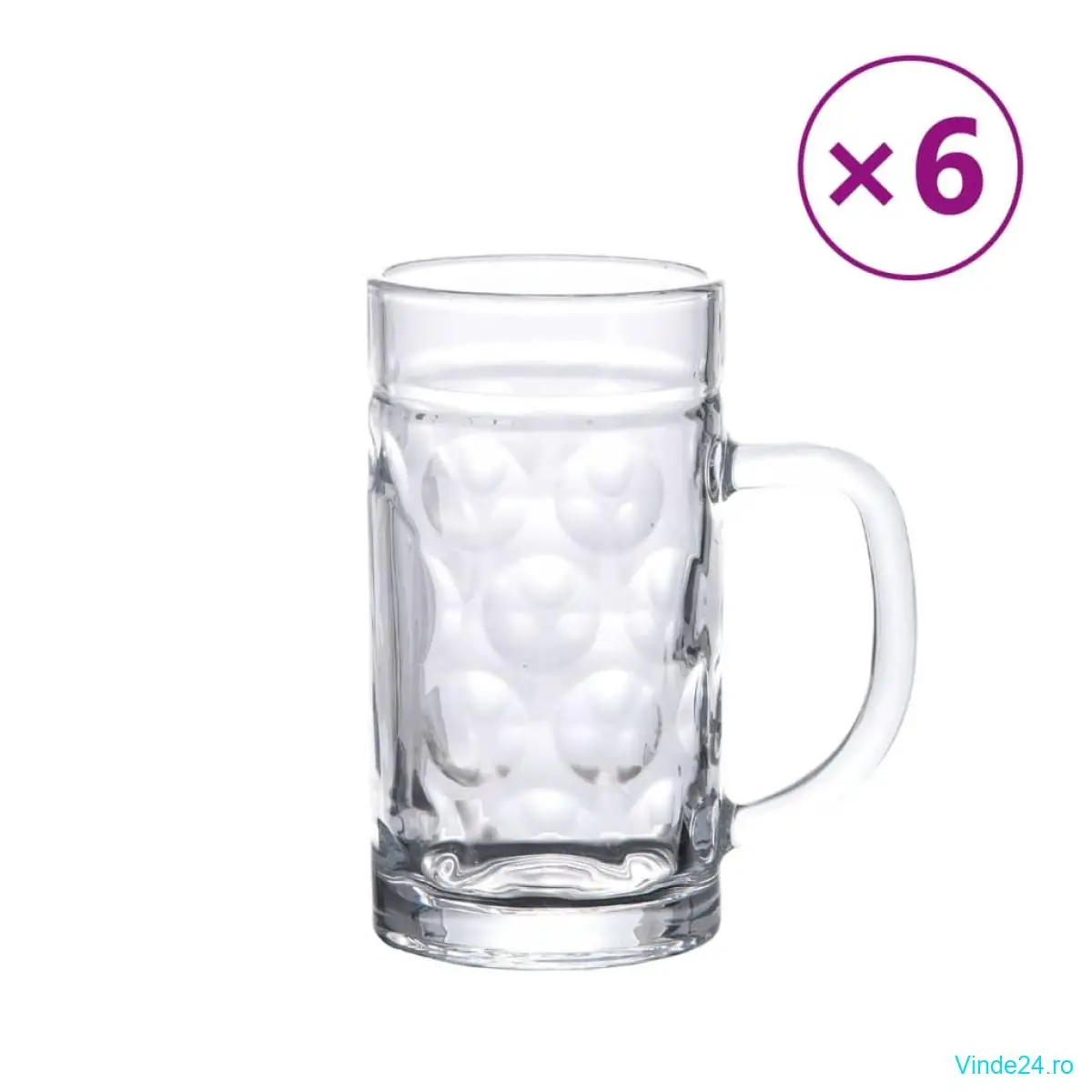 vidaXL Halbe de bere cu mâner din sticlă, 6 buc., 500 ml