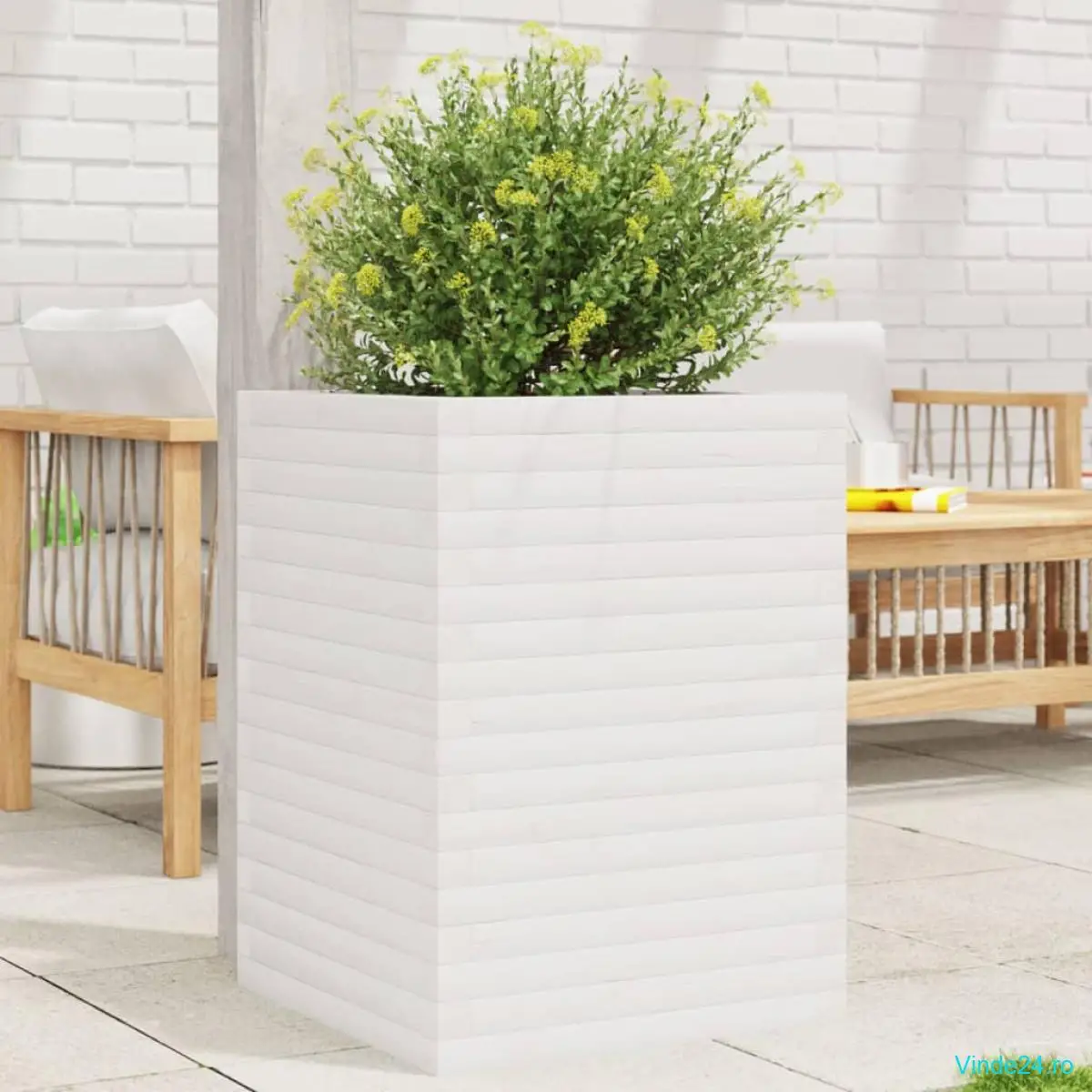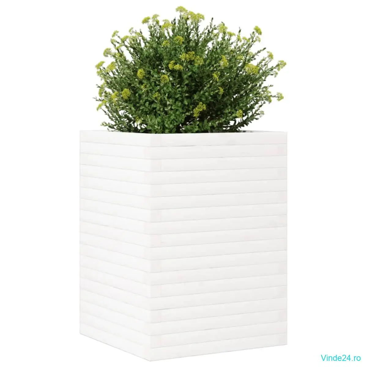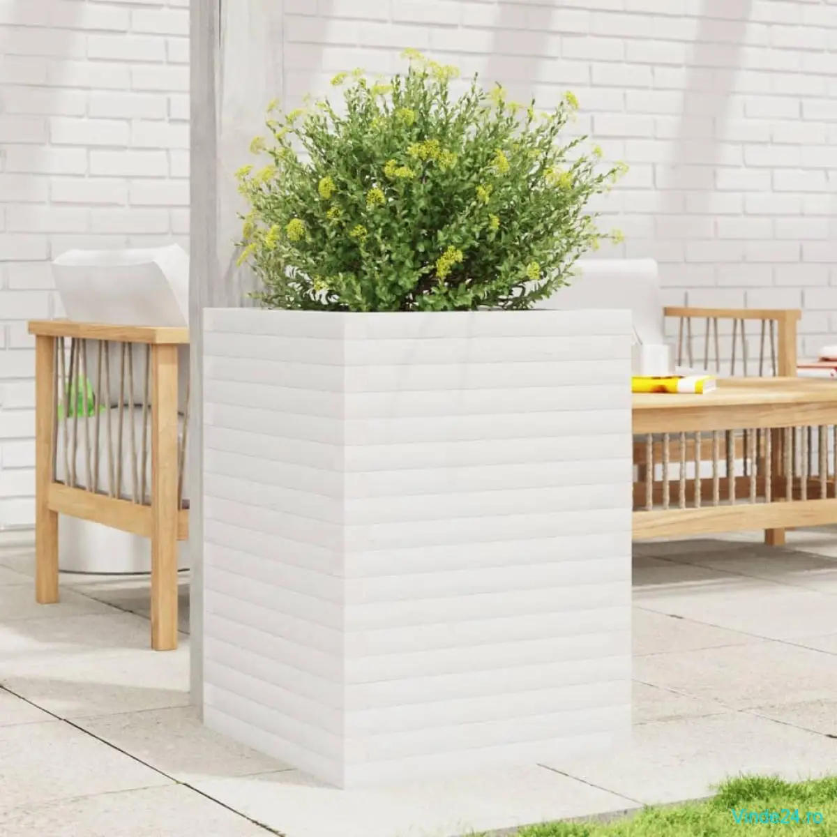 vidaXL Jardinieră de grădină, alb, 50x50x68,5 cm, lemn masiv de pin
