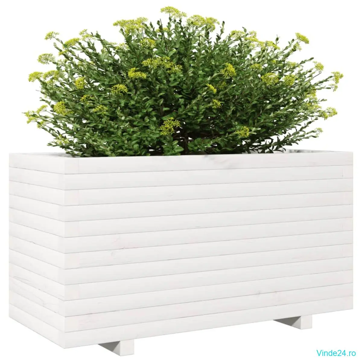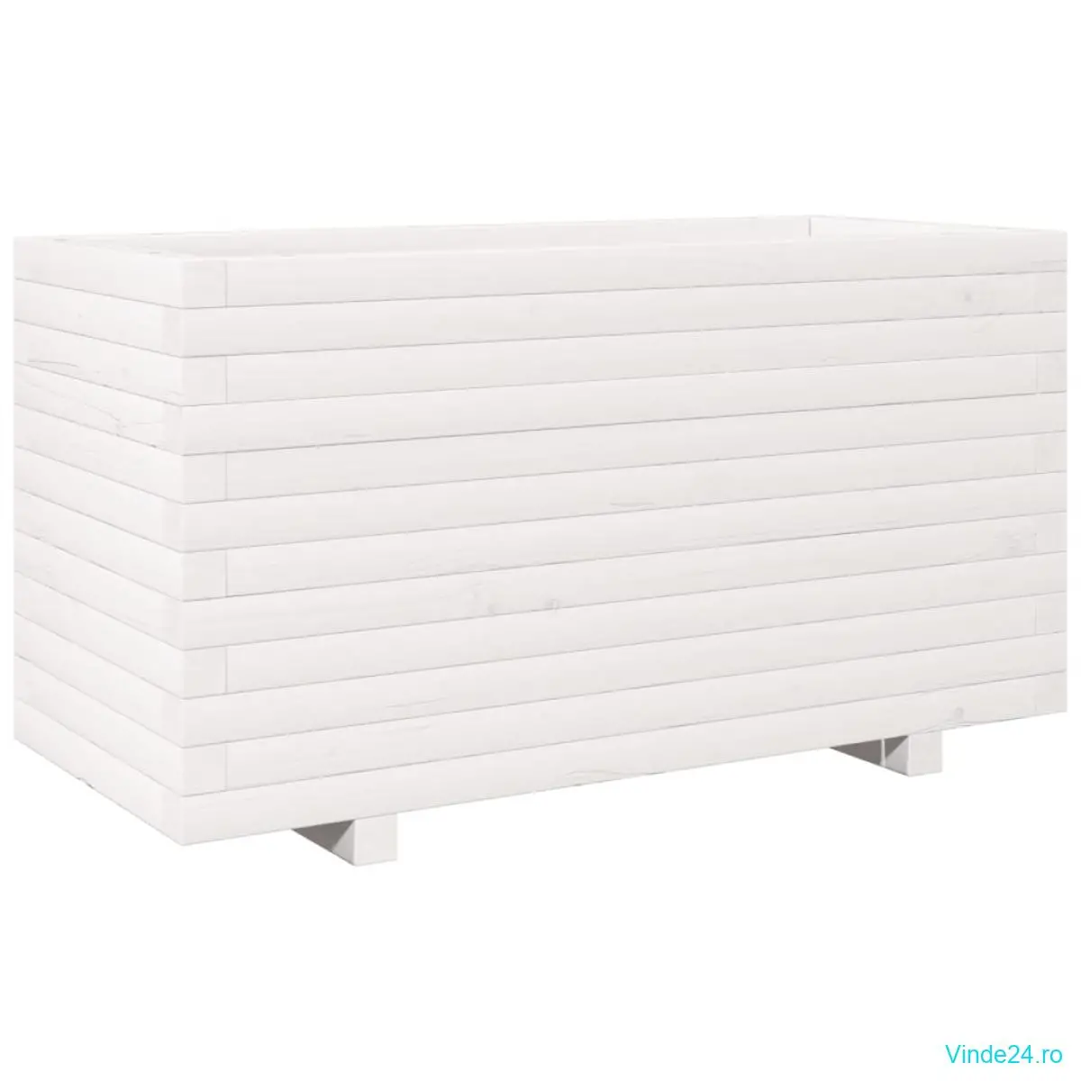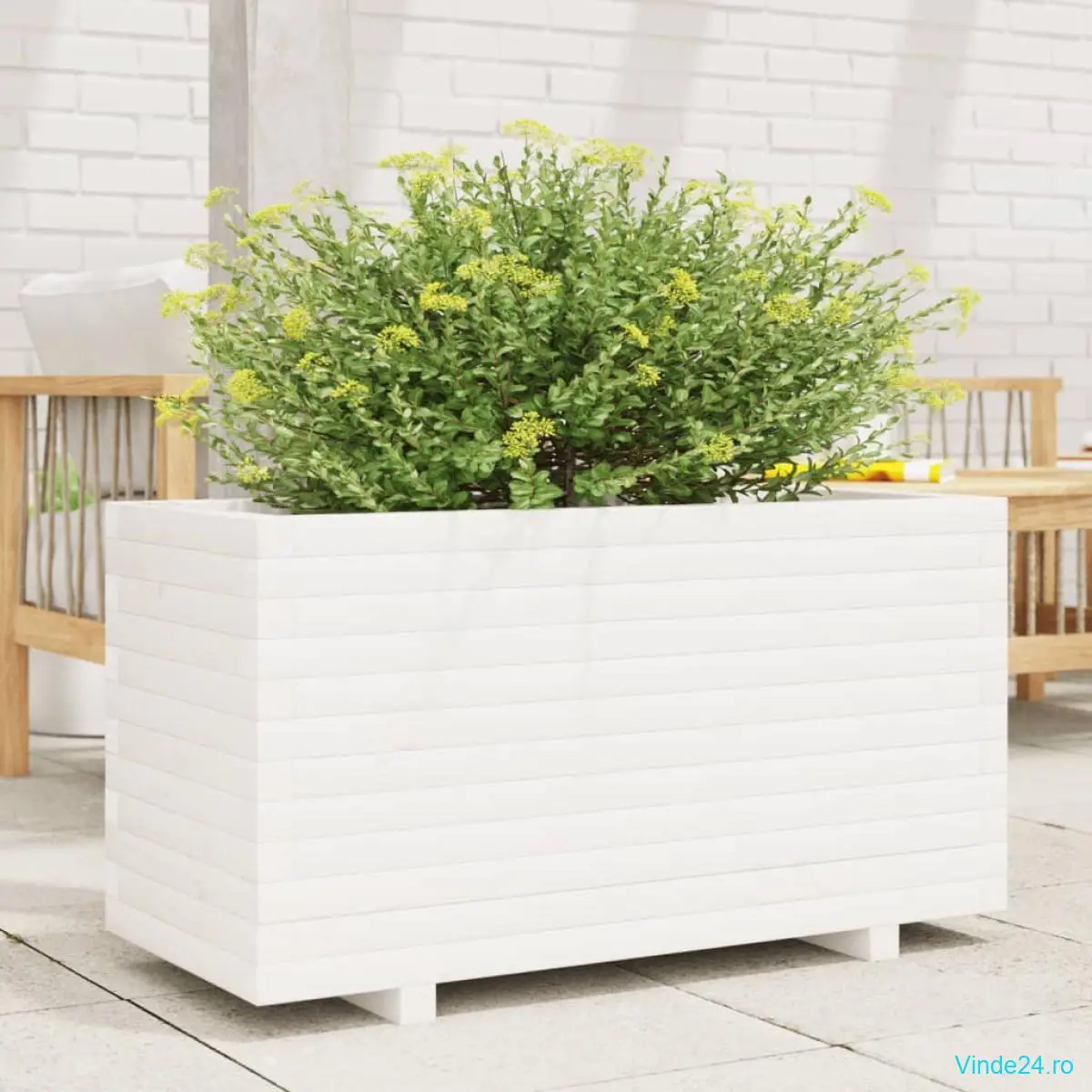 vidaXL Jardinieră de grădină, alb, 90x40x49,5 cm, lemn masiv de pin