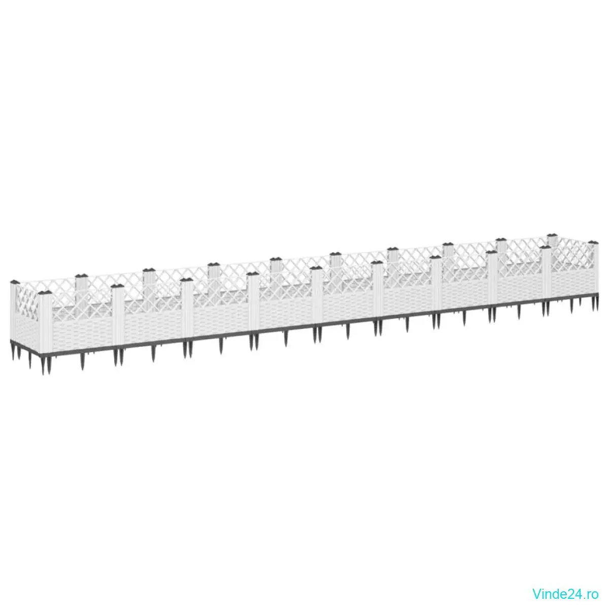 vidaXL Jardinieră de grădină cu țăruși, alb, 363,5x43,5x43,5 cm, PP