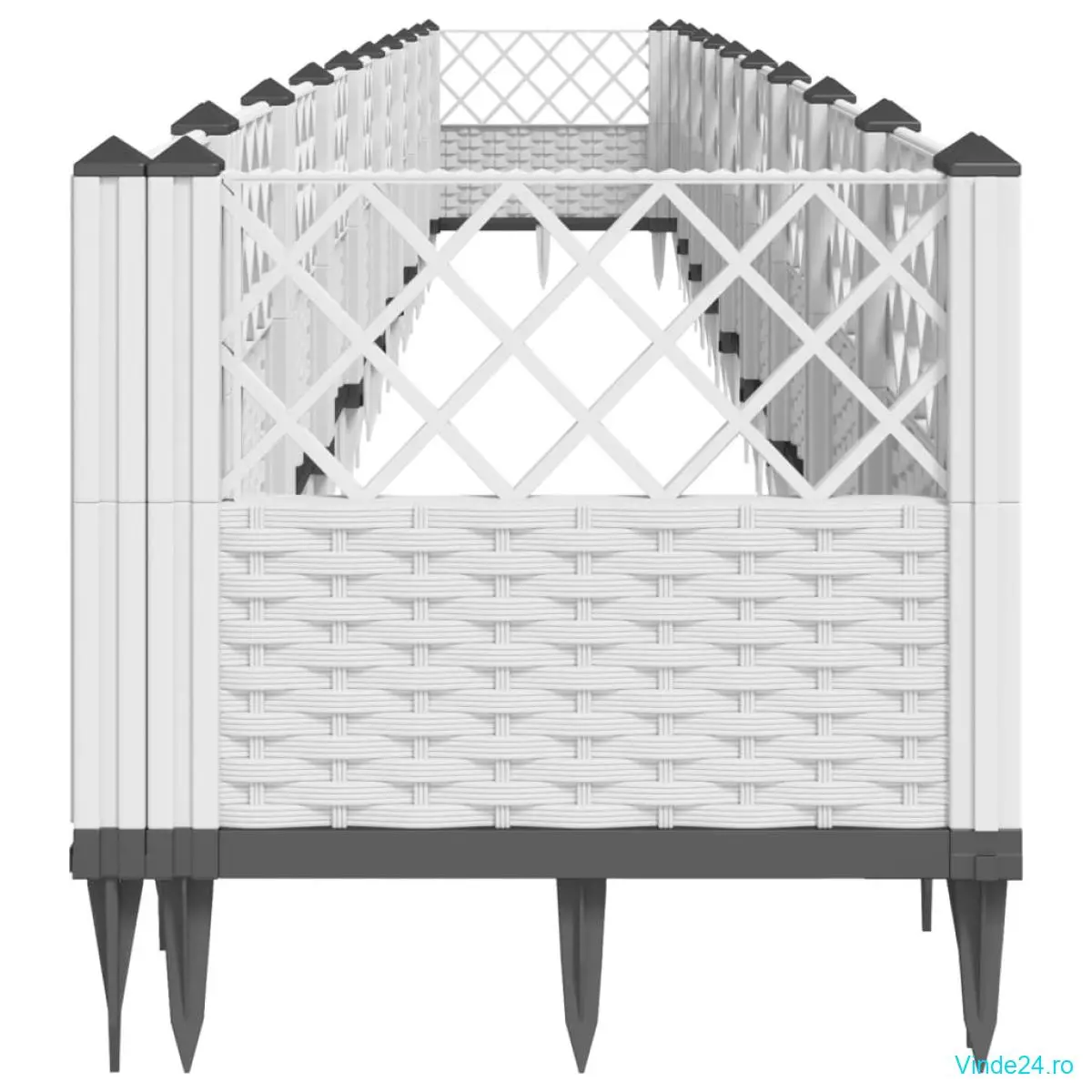 vidaXL Jardinieră de grădină cu țăruși, alb, 363,5x43,5x43,5 cm, PP