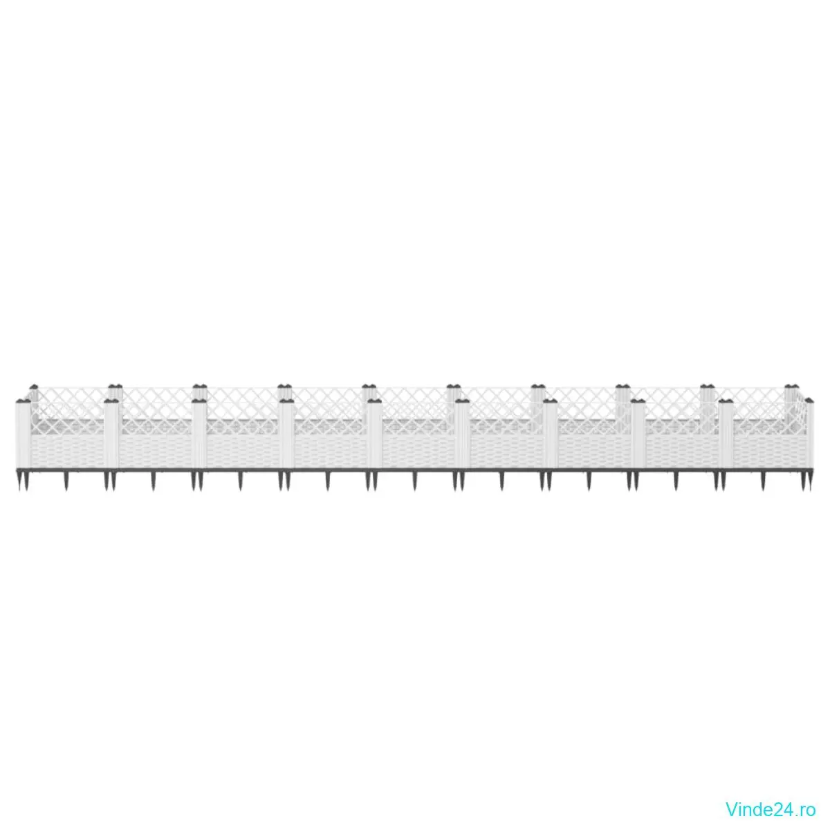 vidaXL Jardinieră de grădină cu țăruși, alb, 363,5x43,5x43,5 cm, PP