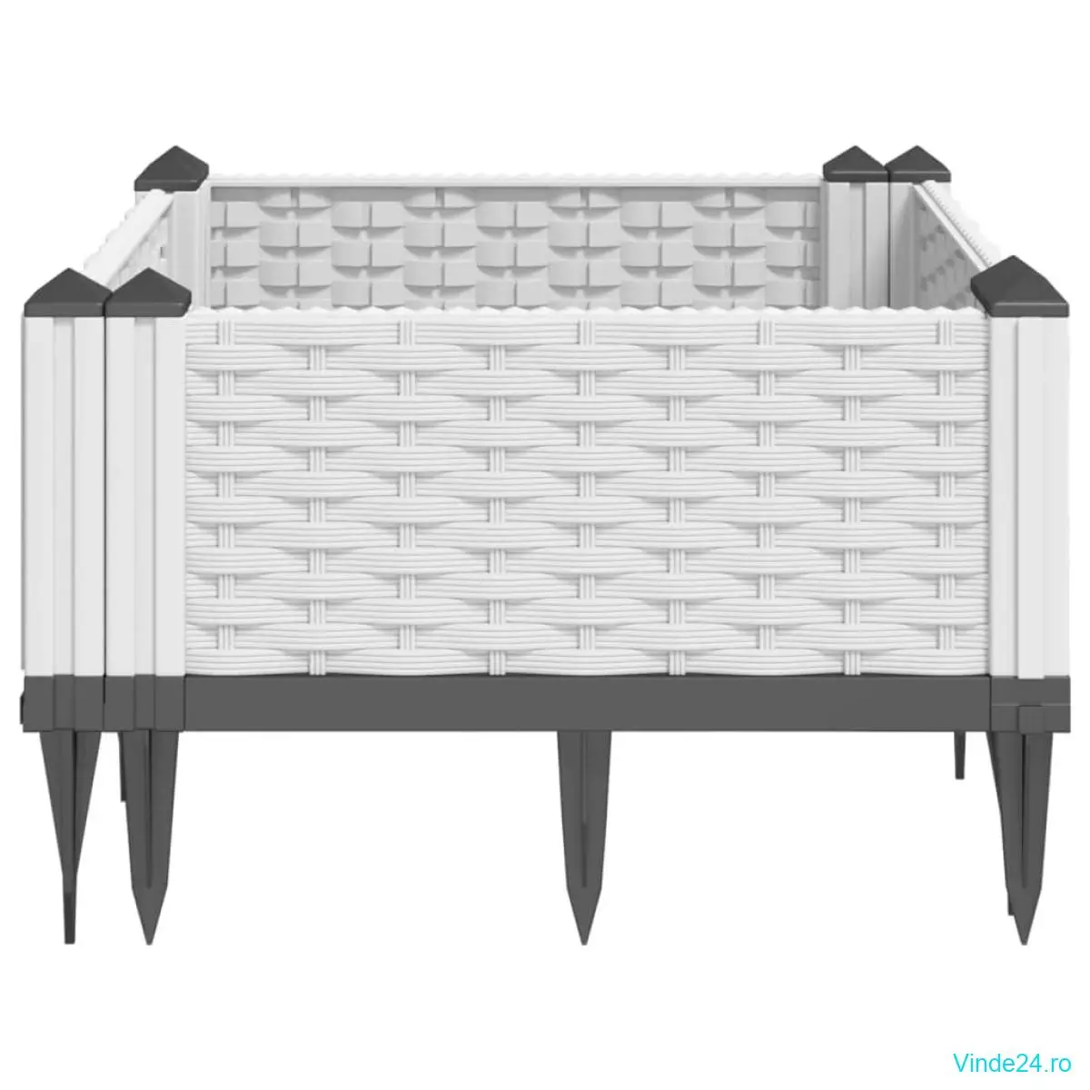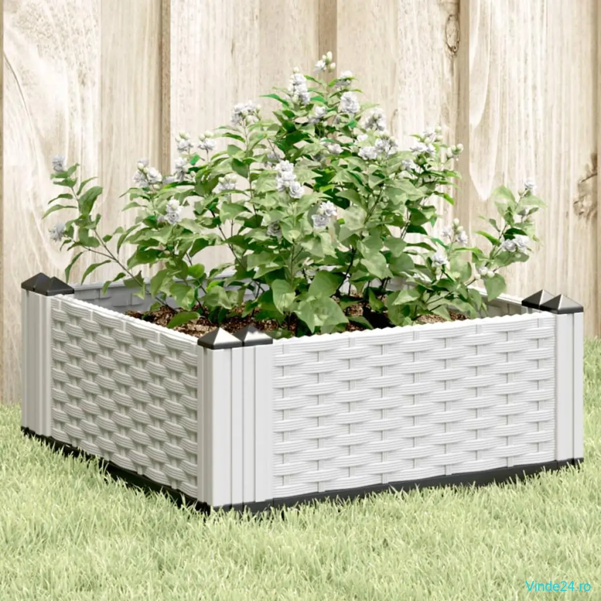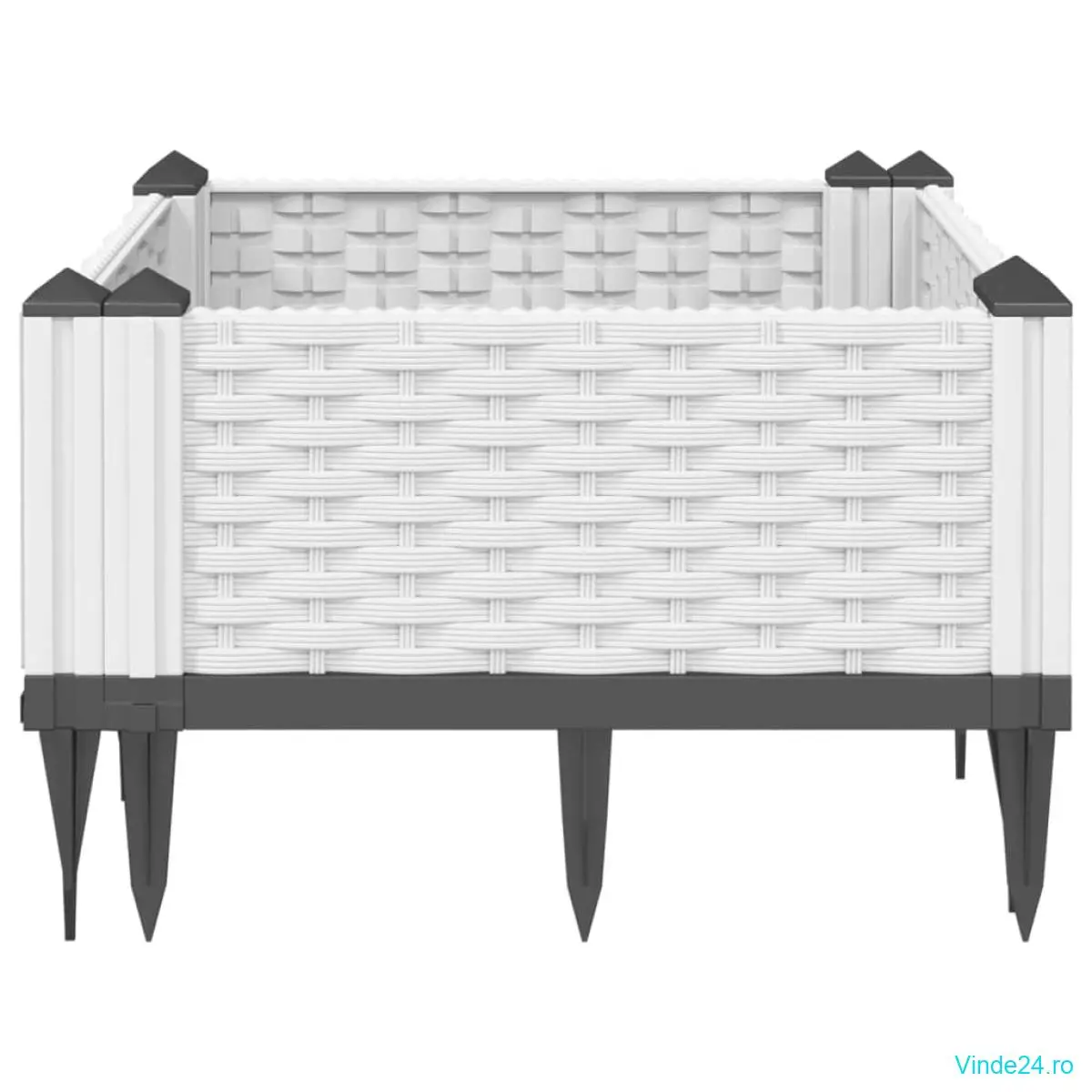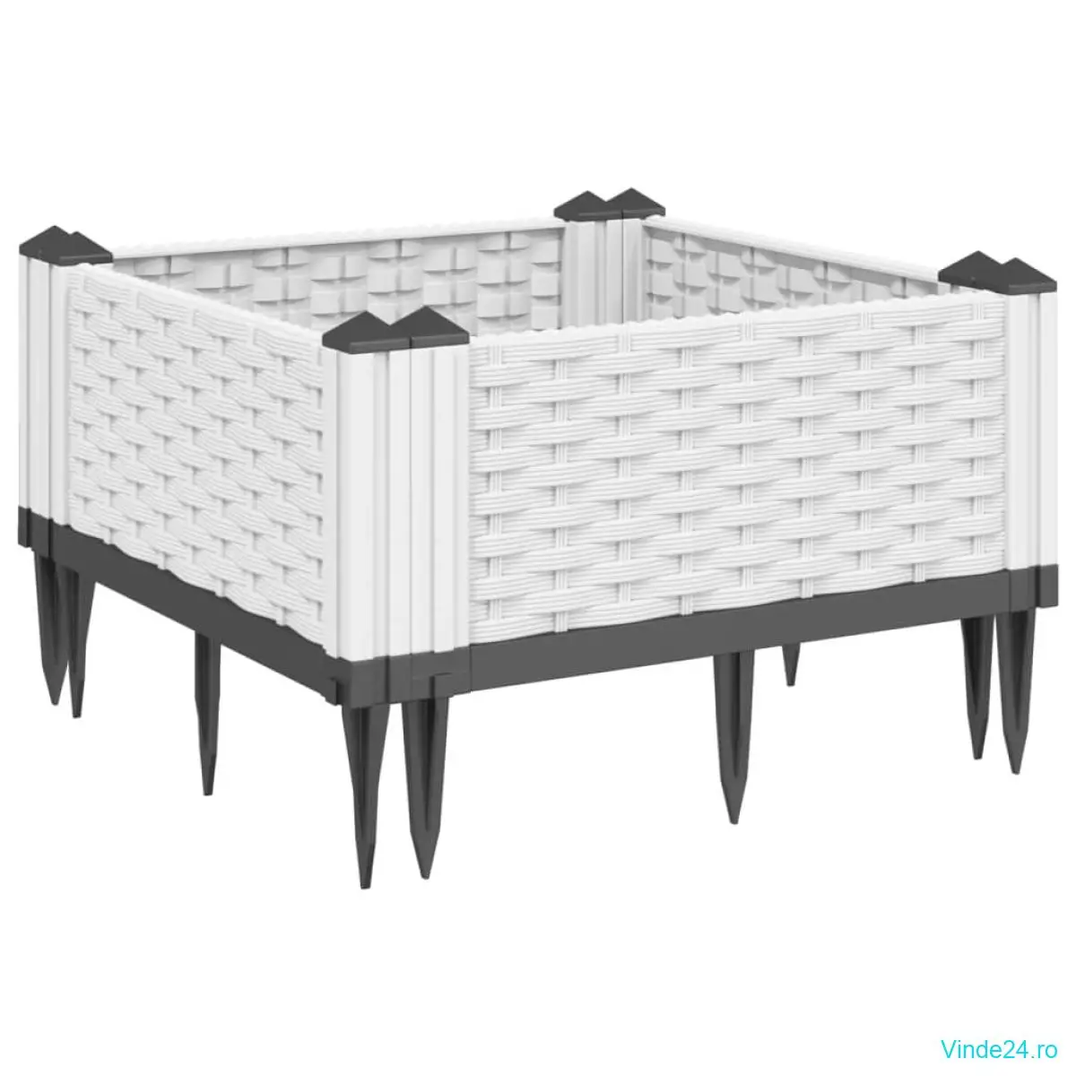vidaXL Jardinieră de grădină cu țăruși, alb, 42,5x42,5x28,5 cm, PP