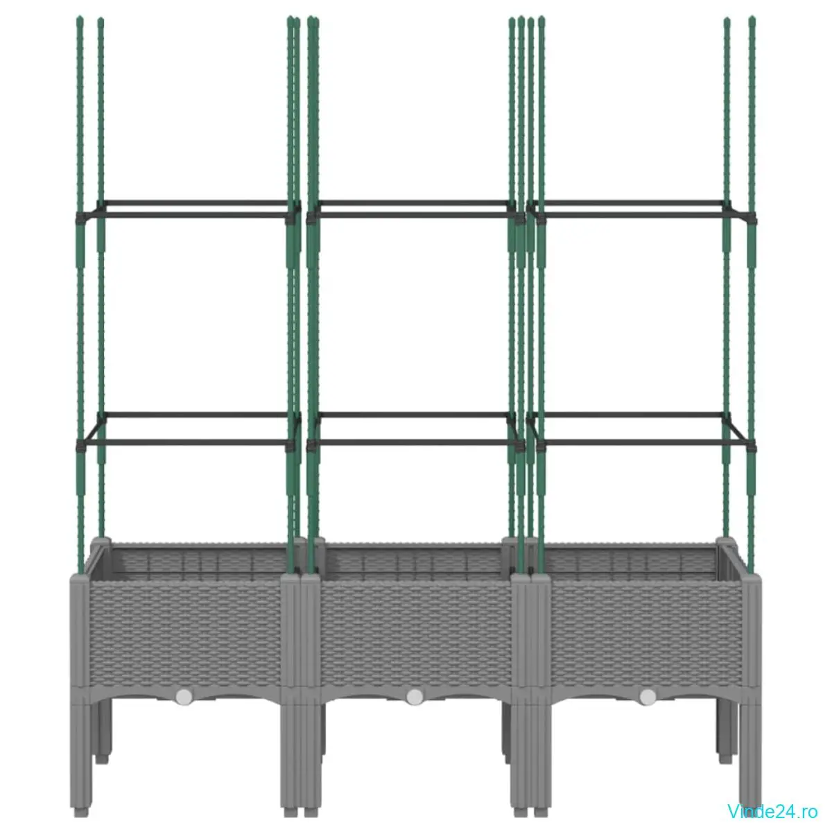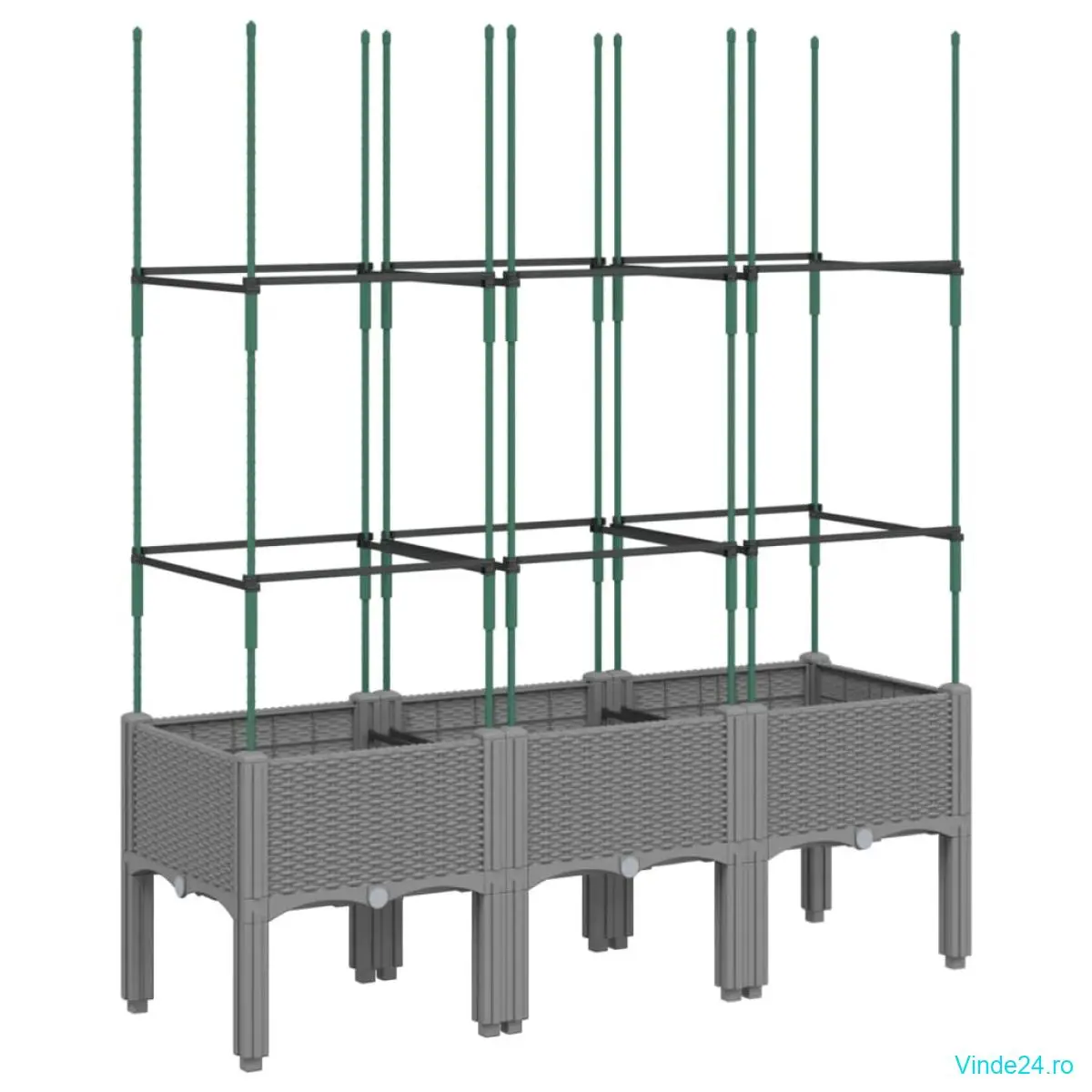 vidaXL Jardinieră de grădină cu spalier gri deschis 120x40x142,5 cm PP