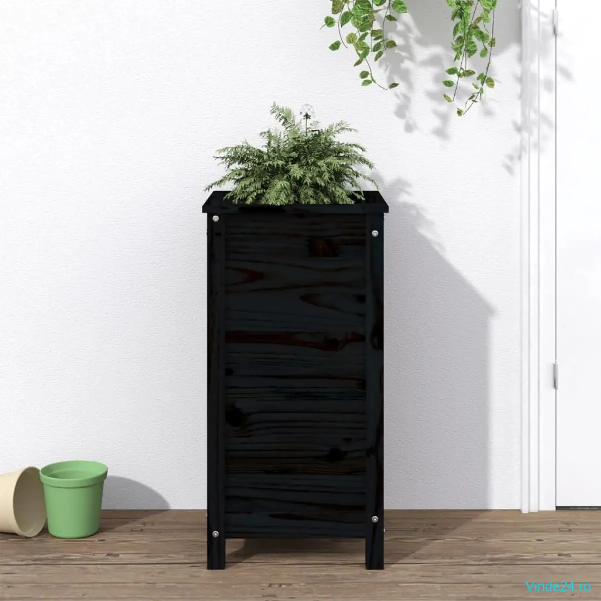 vidaXL Jardinieră de grădină, negru, 40x40x78 cm, lemn masiv de pin