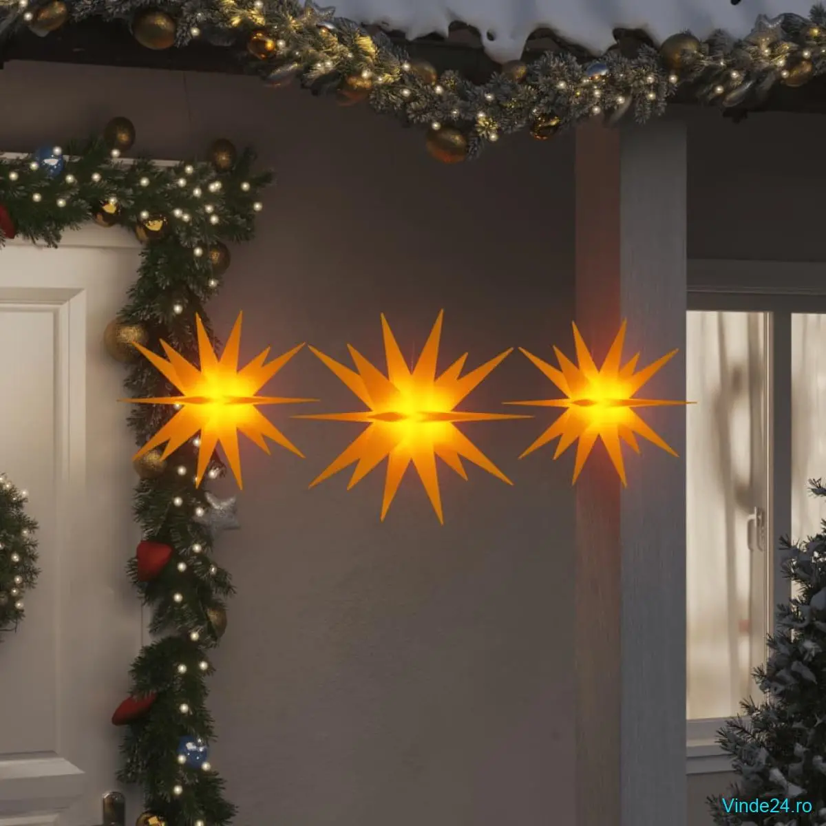 vidaXL Lumini de Crăciun cu LED-uri, 3 buc., galben, pliabil