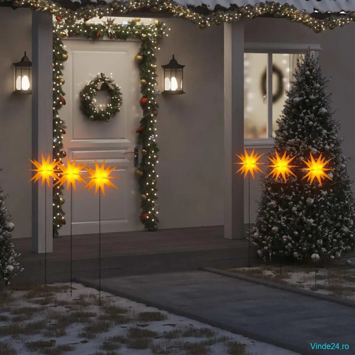 • Ușor de utilizat și depozitat: Doar introduceți steaua iluminată de Crăciun în pământ, cu țărușul de pământ inclus. În plus, lumina LED de Crăciun este pliabilă pentru depozitare ușoară atunci când nu este utilizată.